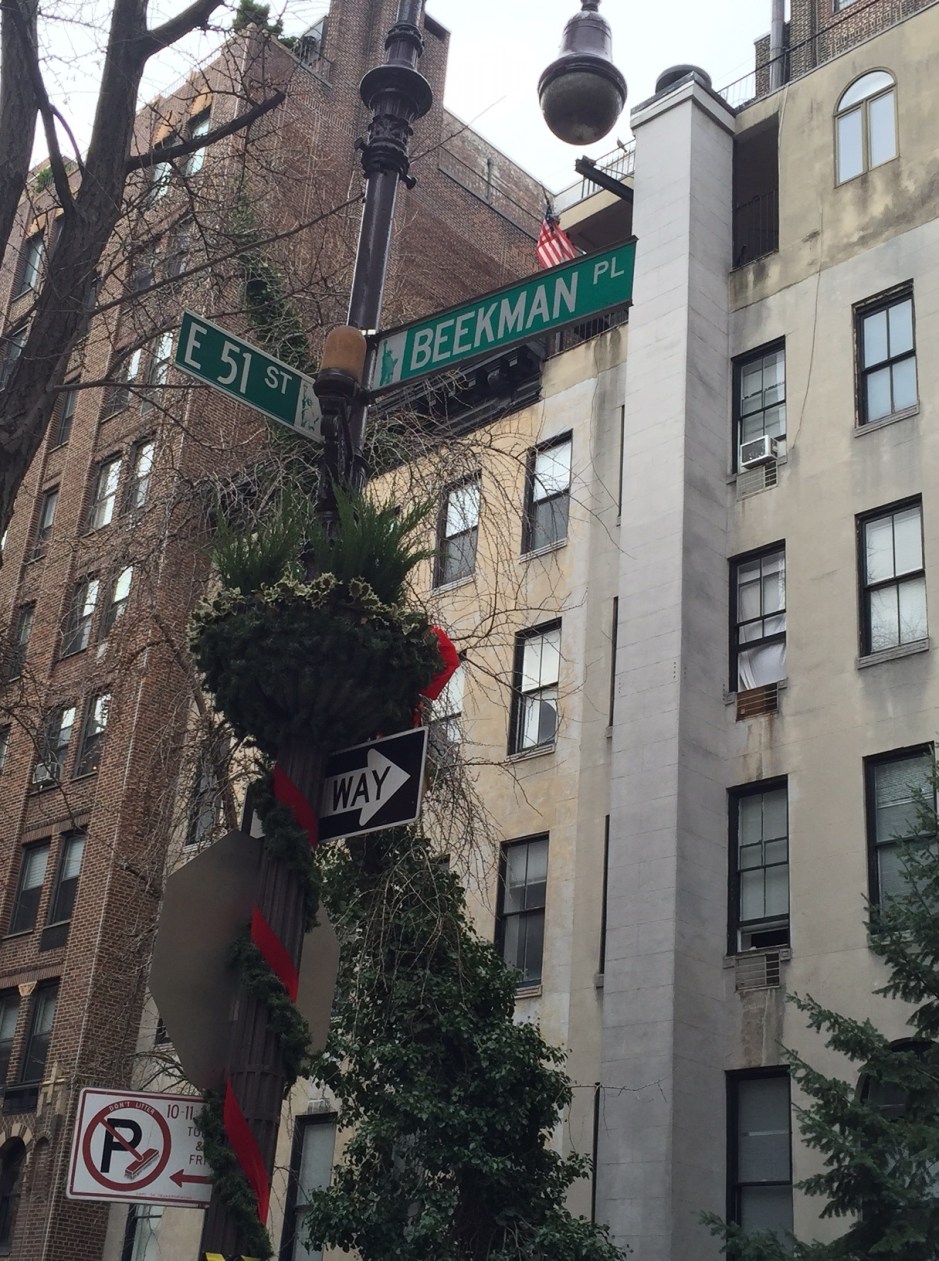 Taking a dérive (an unplanned walk in an urban environment) in the area after previewing an apartment for sale for a customer, I found the area to be far from stuffy – charming and livable. East 51st Street ends in a steep series of steps that lead to Peter Detmold Park. The dog run here is relatively famous among pet owners in the city, being very large and beautiful. A non profit group, PDP-ARF (Peter Detmold Park – Animals Run Free) maintains the dog run, and it is a center for neighborhood events. The Beekman neighborhood association was going to hold a caroling party on the December afternoon that I was there, an almost small-town touch to this quiet gem.