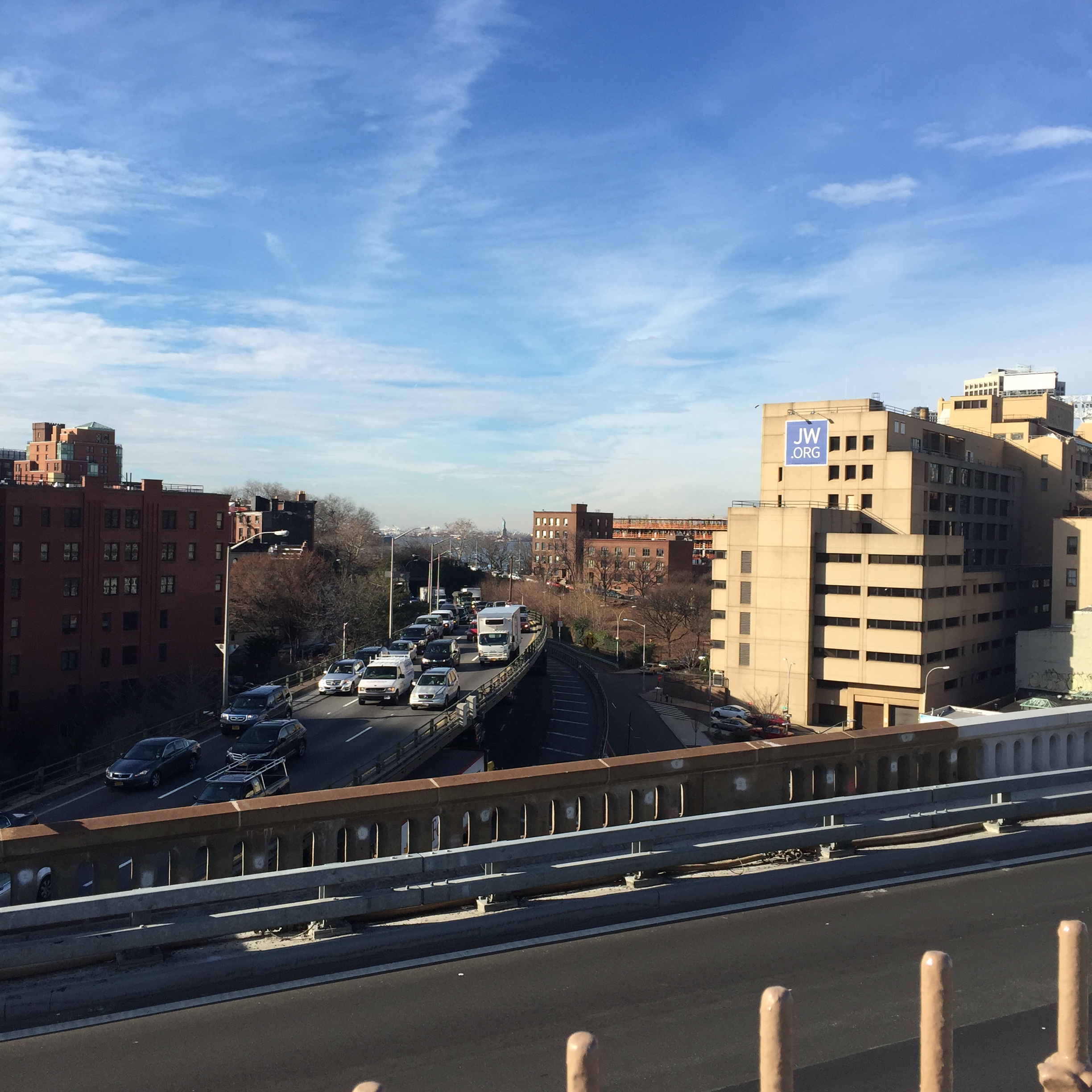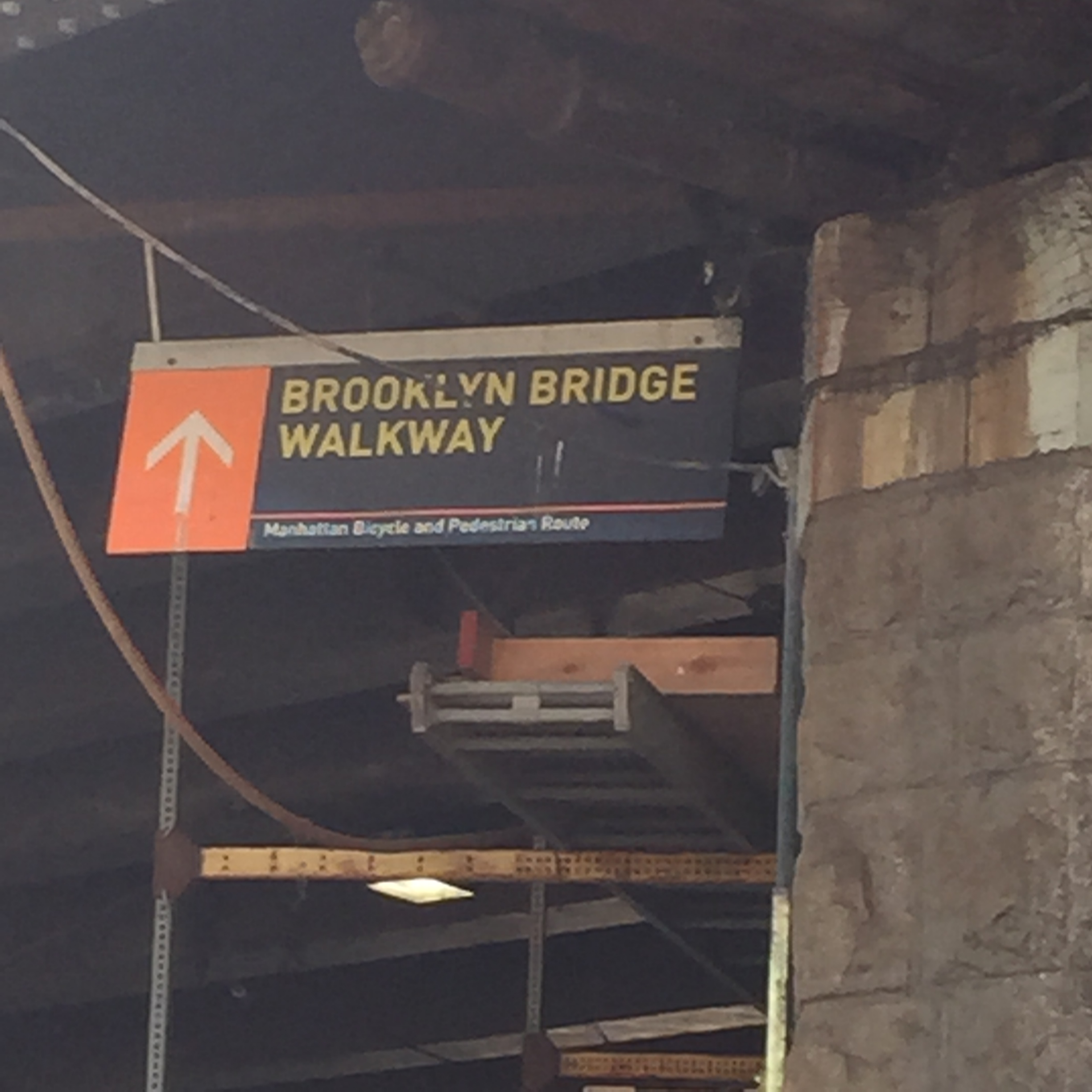 I will be showing how to get on the Brooklyn Bridge pedestrian walkway from Dumbo – many suggest getting on it deeper into Brooklyn, but first of all, to be near the Brooklyn Bridge and not talk a walk around Dumbo is a tragic loss of opportunity (my next blog post is about my walk around this incredibly charming area), and secondly, all you get from the traditional route is a gradual incline up to the bridge with no significant views. You need to be good with stairs to take this route, however. After your walk around Dumbo, head away from the river on Washington Street, and soon signs will helpfully point out where you take a set of stairs up to meet the pedestrian lane.