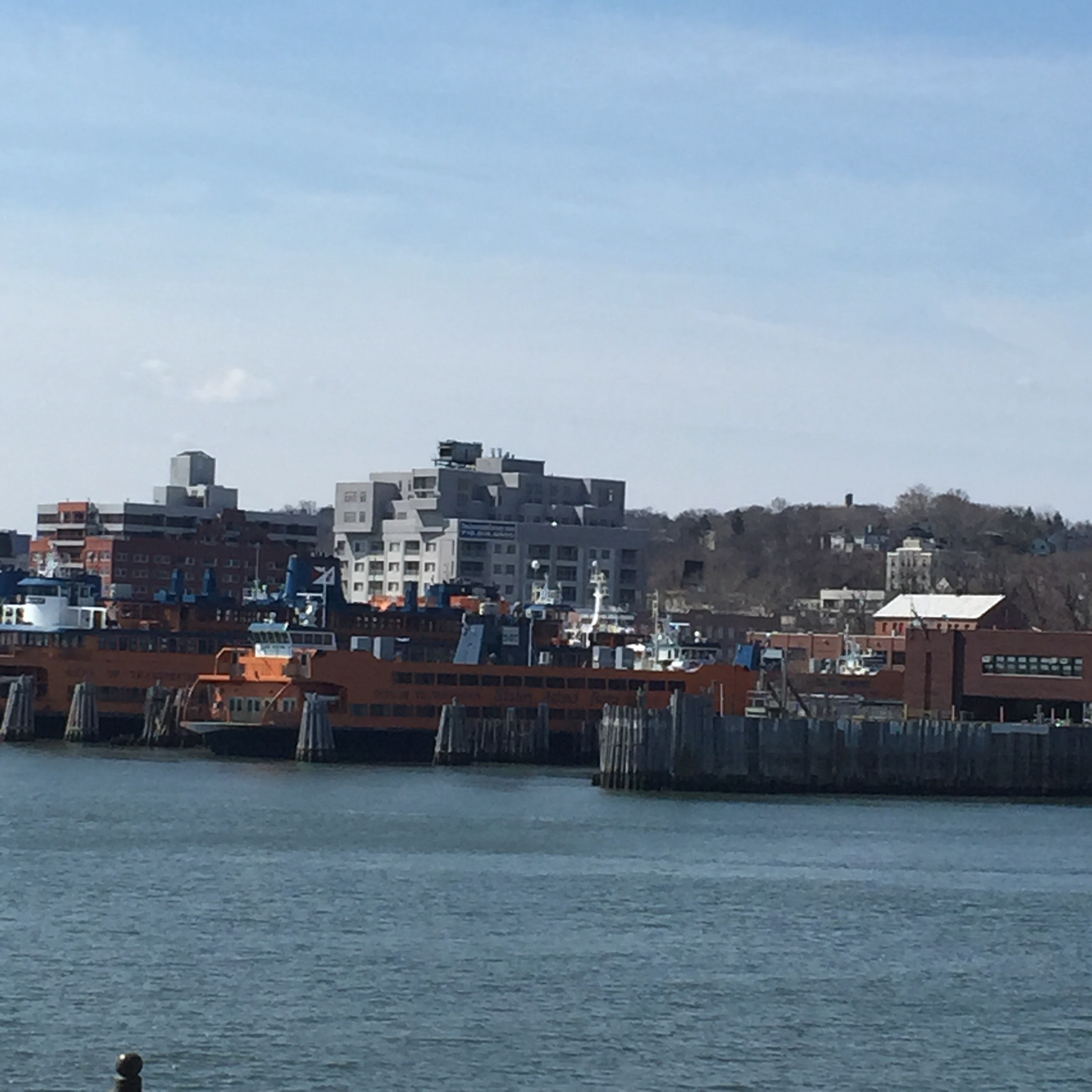 For my trip on the ferry, I began by emerging from the Battery Park subway stop and walking a block or so to the Whitehall Terminal. Redesigned in 2005, the terminal is bright and airy – I particularly like the quotes on the walls by Edna St. Vincent Millay (“We had gone back and forth all night on the ferry”). There aren’t too many places to eat at this terminal, but there are benches and restrooms, and it’s very easy to figure out when the next ferry is coming and from which area you will embark.
