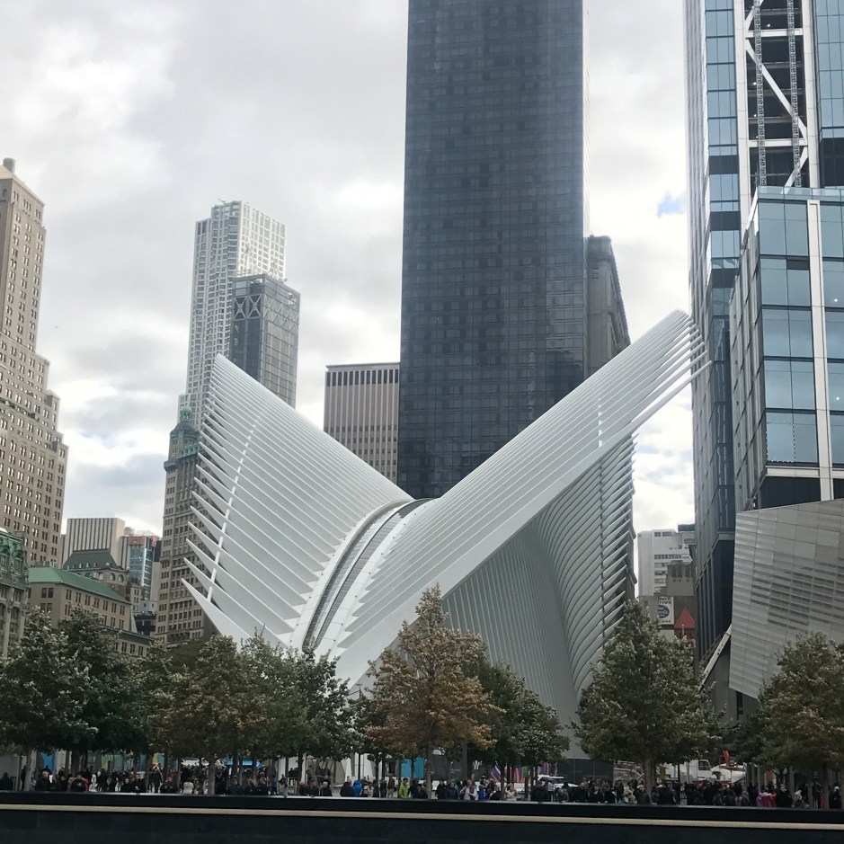 To the east of the reflecting pools, Calatrava’s Oculus soars. It is said that it was meant to symbolize a dove of peace being released from a child’s hand. To me, it seems as if it is a great prehistoric bird, perhaps just landed or just taking off, guarding this most sacred space. Like a phoenix reborn from the ashes, this part of New York City suggests our tremendous resilience and our unbounded hope for the future.