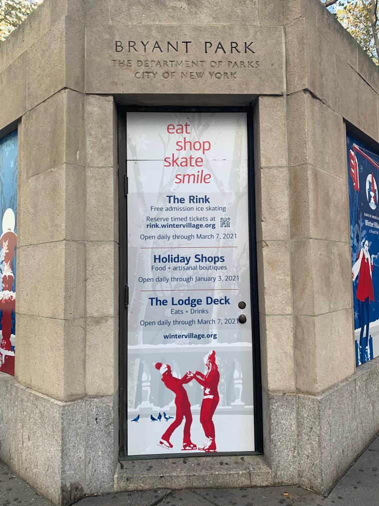 The Winter Village at Bryant Park and holiday market was back this year, just with more space between vendors and lighter crowds. Skating is going on as well, you can see a video of that here. To see this and many other holiday markets a few years ago, click here.