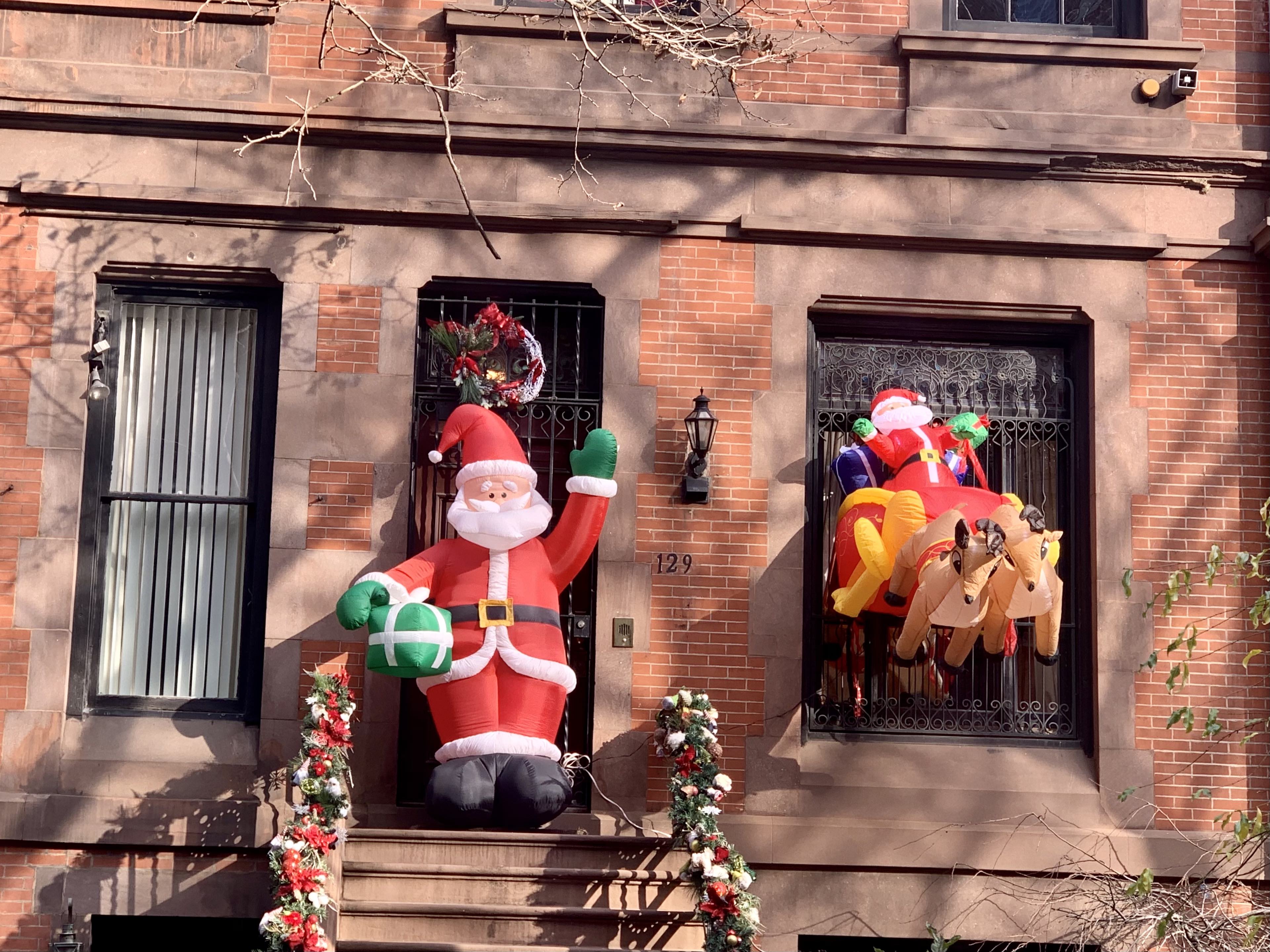 Once again, New Yorkers decorated their homes to celebrate this dark time of year – in a very dark year – with light, humor, and bright color. To see a previous blog post about residential holiday decorations, click here.