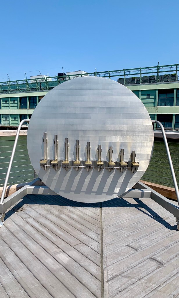 Enter where 13th Street meets the Hudson River, walking over a bridge to get to this park built over the water. One of the first things you see is a series of food trucks with an area to eat in the shade. There are a variety of wines, beers, and cocktails available in addition to food, coffee, pastries, and non-alcoholic beverages.