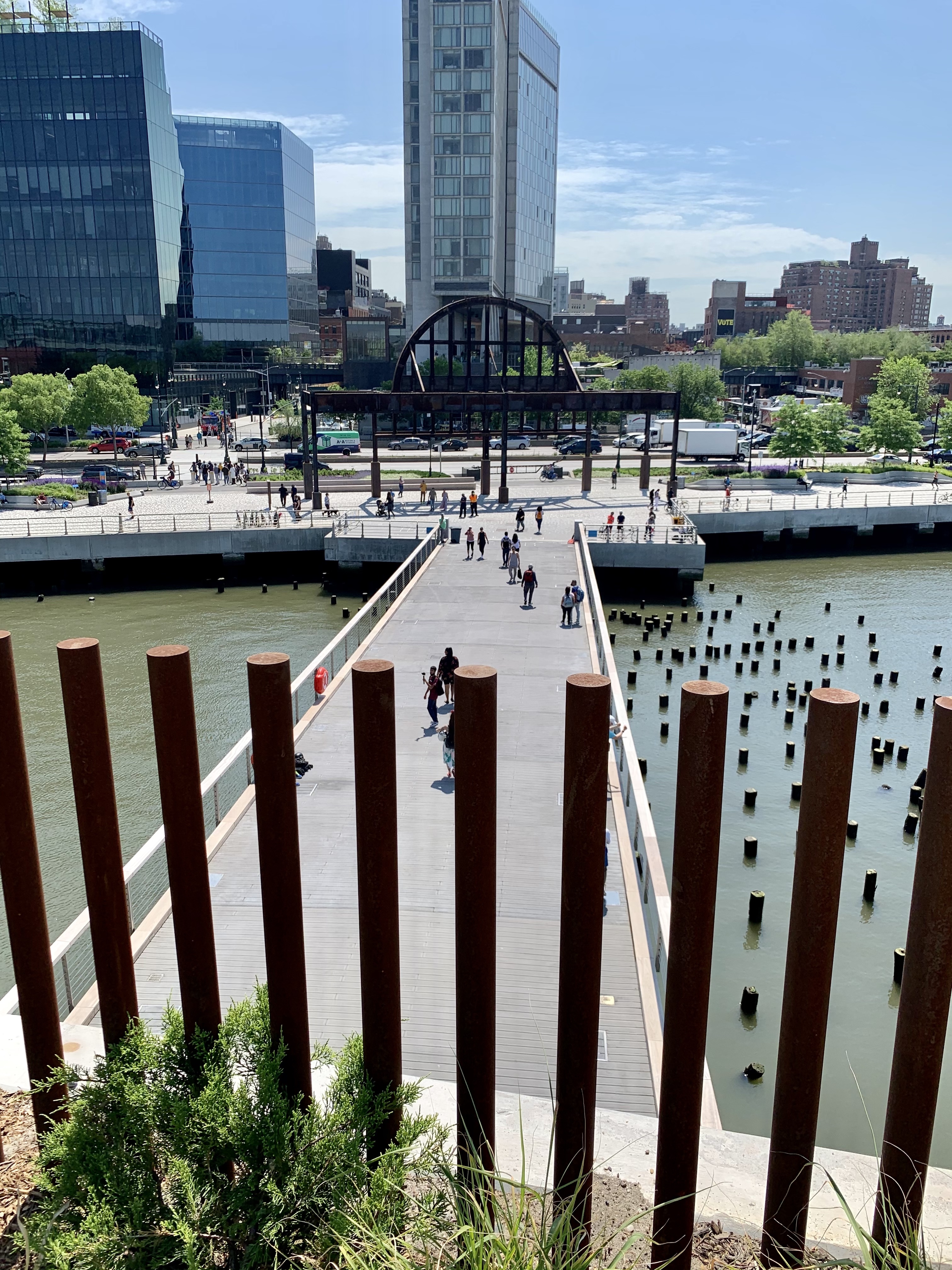 During New York City’s lockdown due to the Covid-19 pandemic in 2020, I took up bike riding, primarily along the Hudson River Greenway (see more detail about my perspective on biking in NYC here). Although I had previously noticed the odd constellation of what looked like concrete mushrooms blooming in the Hudson River just south of Chelsea Piers at Pier 55, on my nearly-daily rides past the construction area I watched with interest the development of the city’s newest park. I was thrilled to visit Little Island Park on its first day open to the public, May 21, have been back recently, and have another visit booked (more on the need to book timed tickets later).