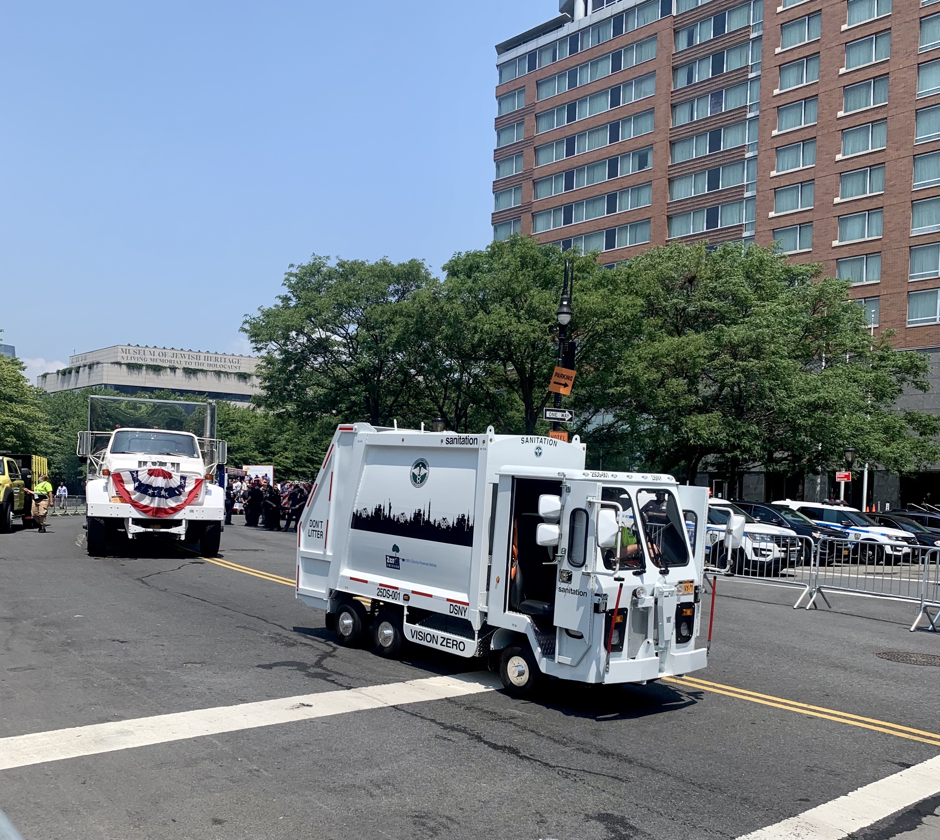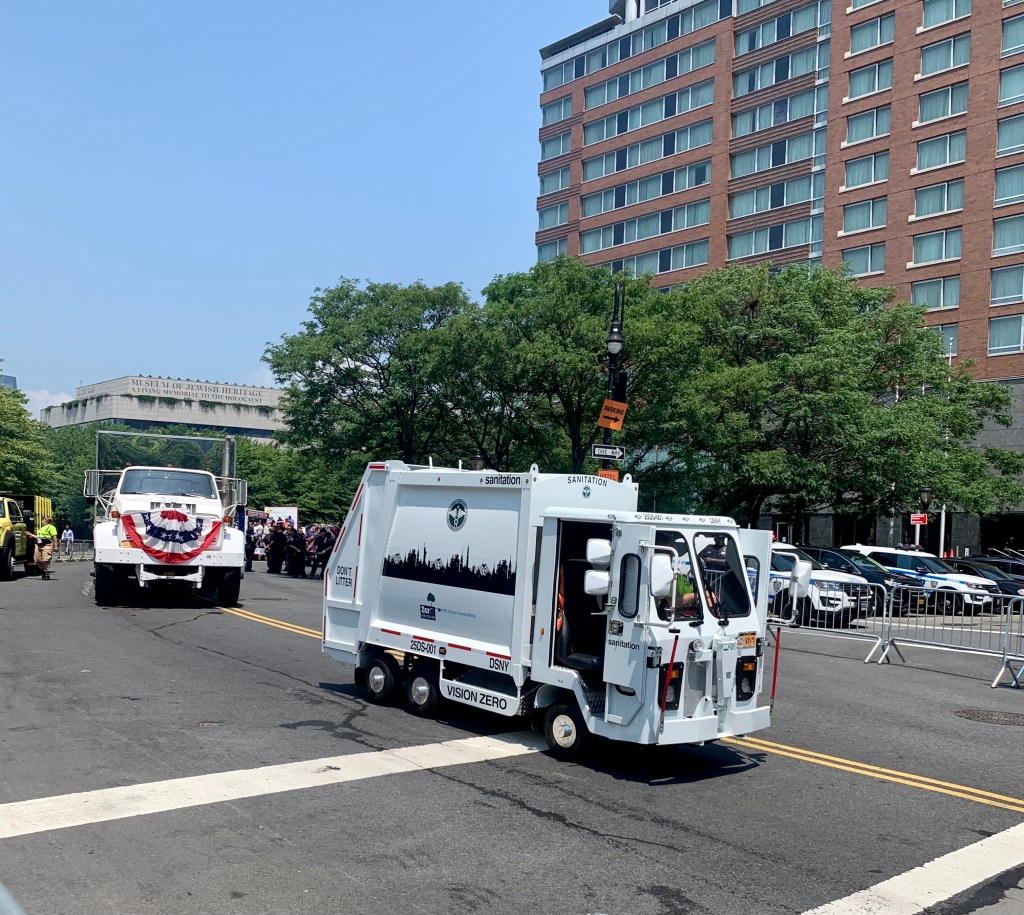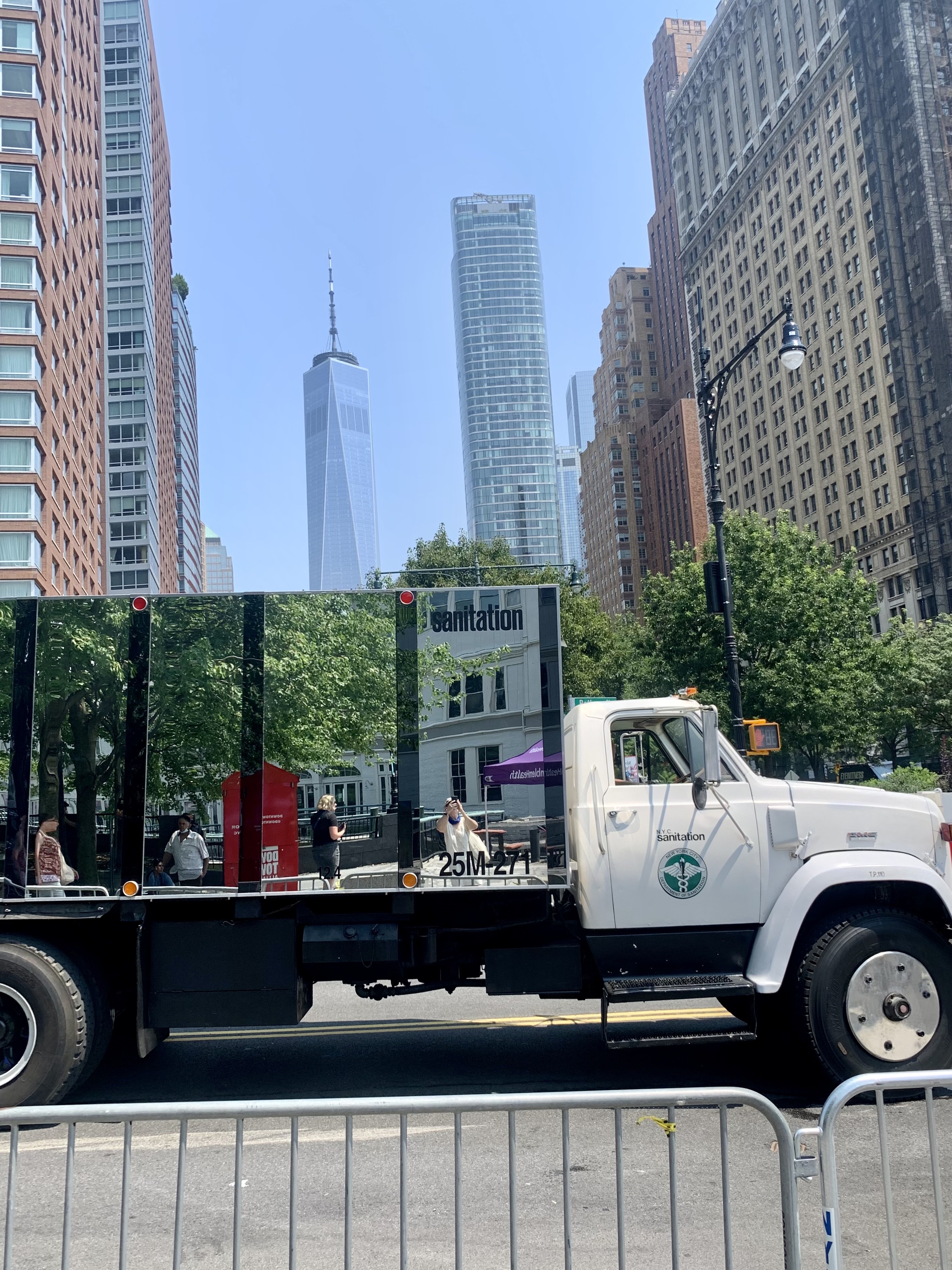 One of the things that kept bringing up emotion to me during the parade was in part due to seeing it from its starting point in Battery Park. During the most extreme lockdown, when New Yorkers were asked to stay at home except for exercise, I began biking along the Hudson River bike path from Hell’s Kitchen to Battery Park, walking around, and biking back. It was so rare to see anyone else that if I did pass another biker we would generally wave and acknowledge each other. More often than not, I was completely alone walking in Battery Park, gazing out to the Statue of Liberty and seeing signs that once would have been baffling about wearing a mask and keeping six feet apart. To be back in Battery Park in a crowd of vaccinated and unmasked fellow New Yorkers, celebrating those who kept the city going, was especially meaningful to me.
