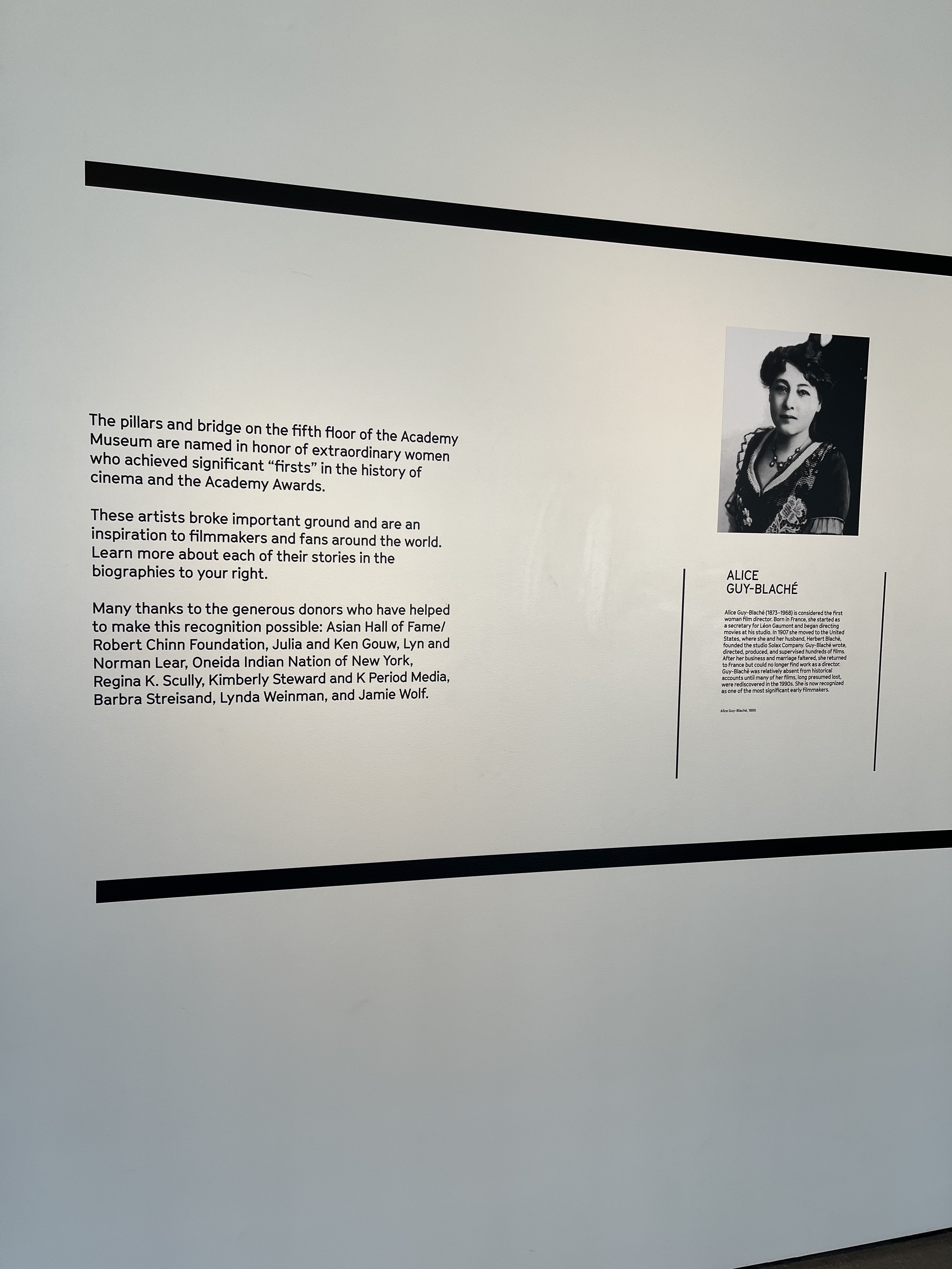 This area is breathtaking, and I have no doubt that this part of the museum is going to become an iconic part of LA. To get from the main building to this area, you cross over the Barbra Streisand bridge, just past a display honoring women in the film industry from the early days to the present.
