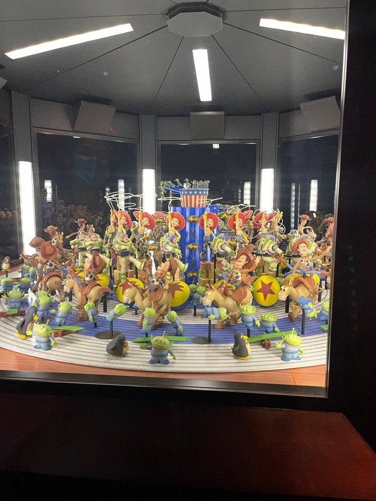 On the same floor, you could see a zoetrope with a scene from Toy Story. A zoetrope illustrates how individual photos (or in this case, actual figures) can give the illusion of continuous motion (see the entire sequence here.)