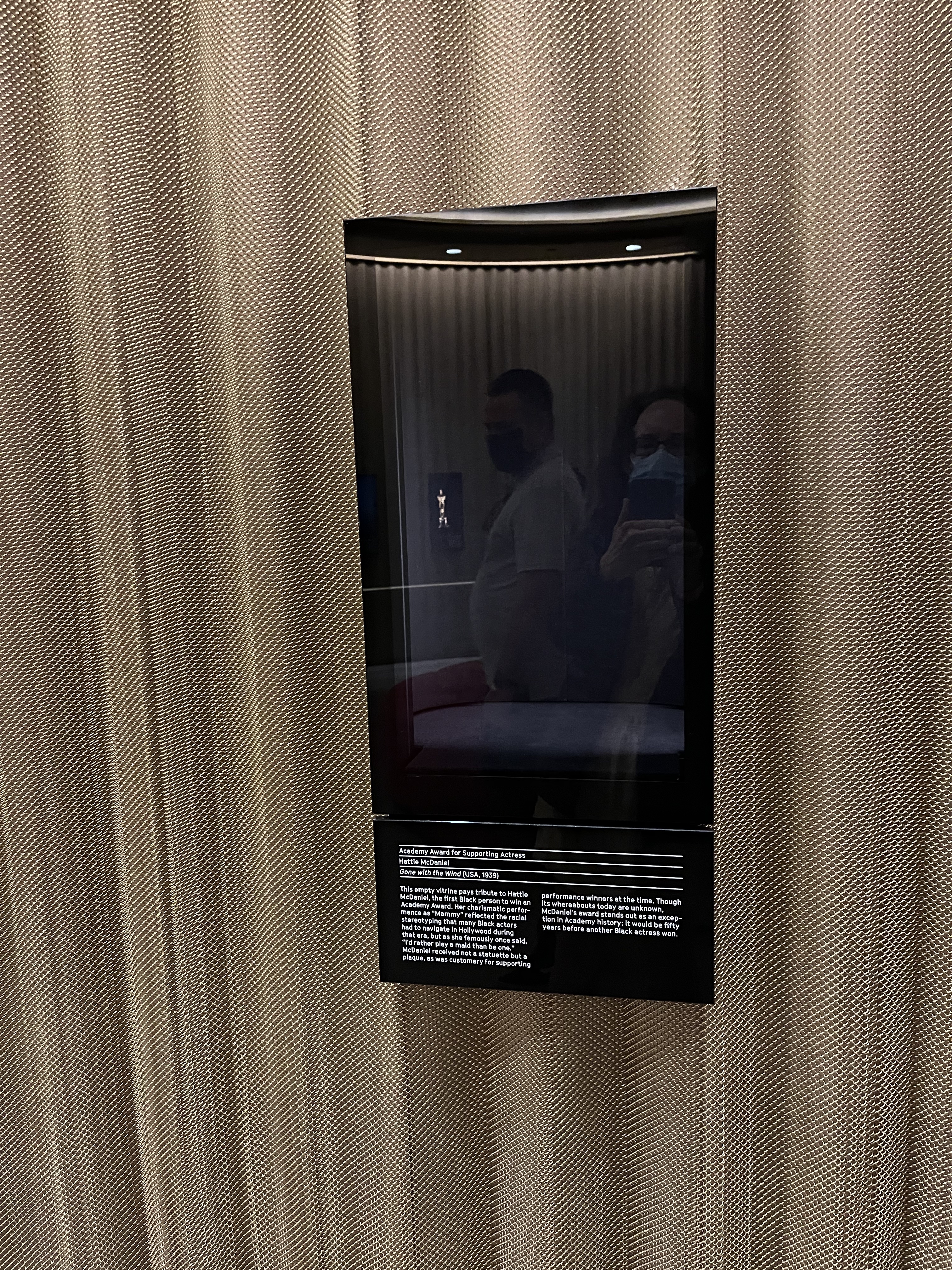 There is a room with famous Oscars, and, poignantly, an empty space for Hattie McDaniel’s Best Supporting Actress award from 1939. She had to sit separately from the rest of the cast of Gone With the Wind because of segregation, and her Oscar has been lost.