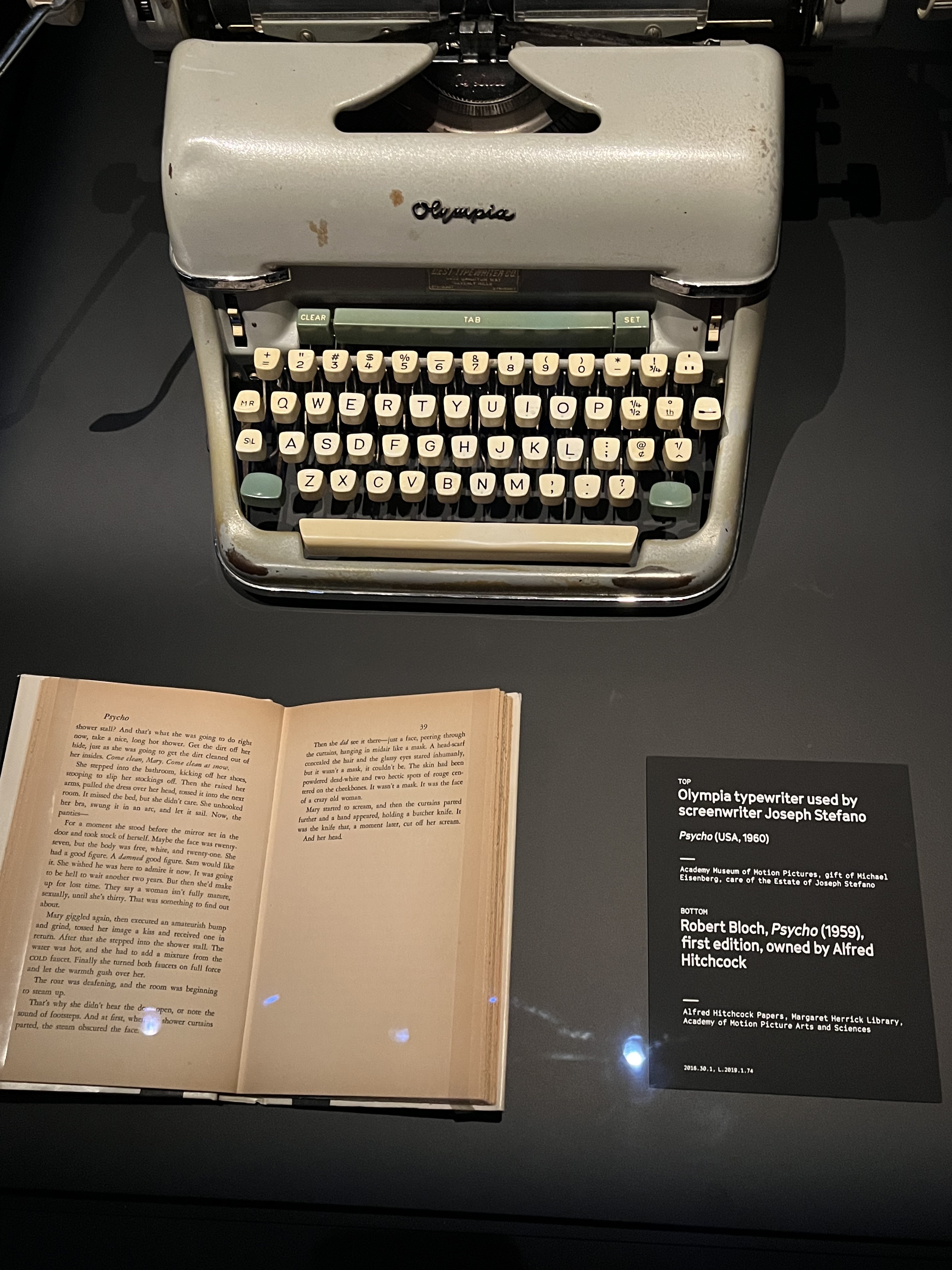 Hitchcock’s Psycho is one of my favorite films, so I particularly enjoyed this shower scene storyboard and other materials, including Hitchcock’s own first edition of Robert Bloch’s book.