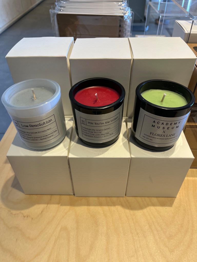 The gift shop has an abundance of unique items. I like the logo on their tote bags, hats and shirts, featuring the look of the outside of the museum. There were paper clips shaped like Oscars, and even candles that supposedly evoke the scent of different movies scenes and types (POV: You’re the Villain was my favorite trope if not my favorite scent!).