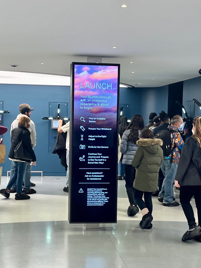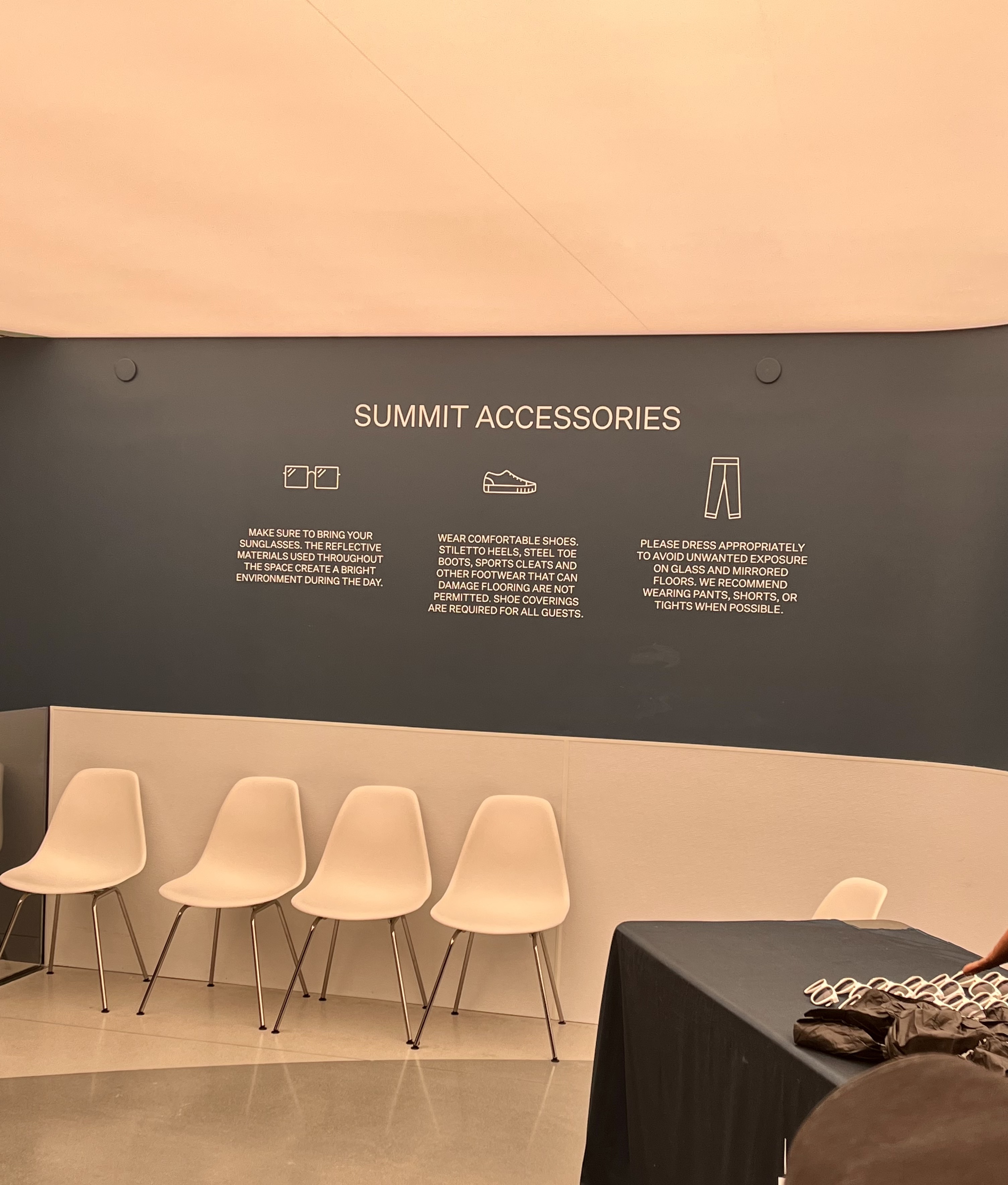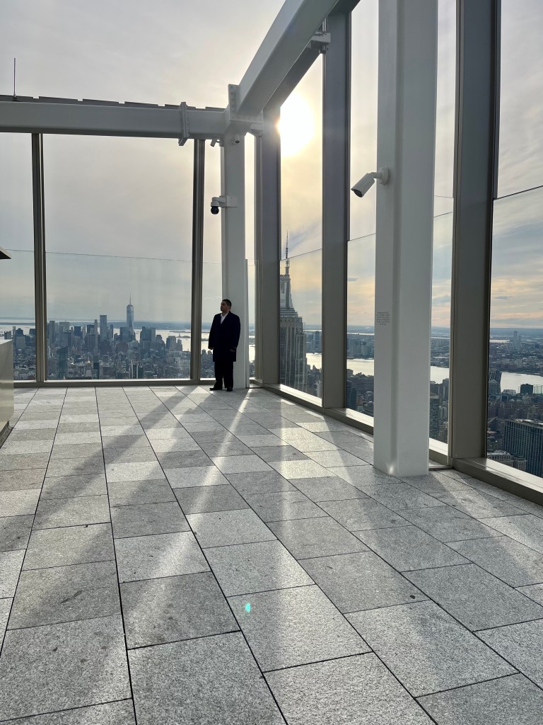 To get there, enter just to the east of the Grand Concourse at Grand Central Station. At this point (November 2021), there is a vaccination check before seeing a brief film and getting booties to cover your shoes (the reason for that becomes pretty clear once at the observation area). After scanning your tickets, you have two photos taken – one of your group as well as an individual photo of each. All digital photos are linked to a wristband with a QR code that you wear while experiencing SUMMIT.