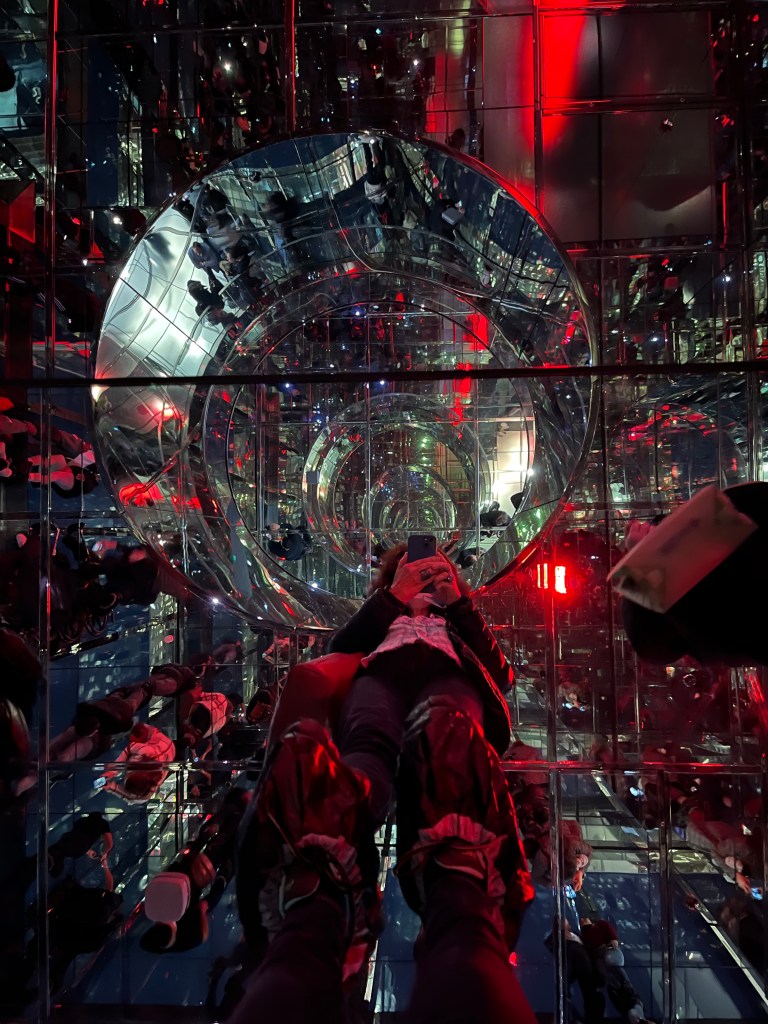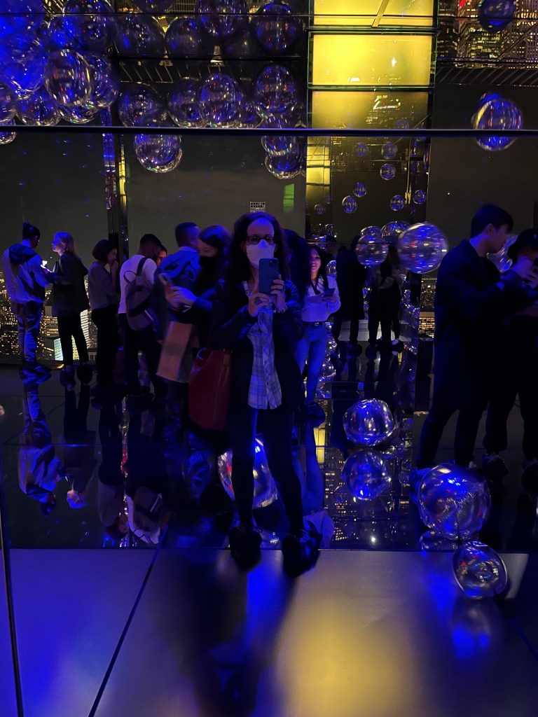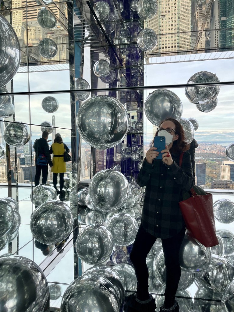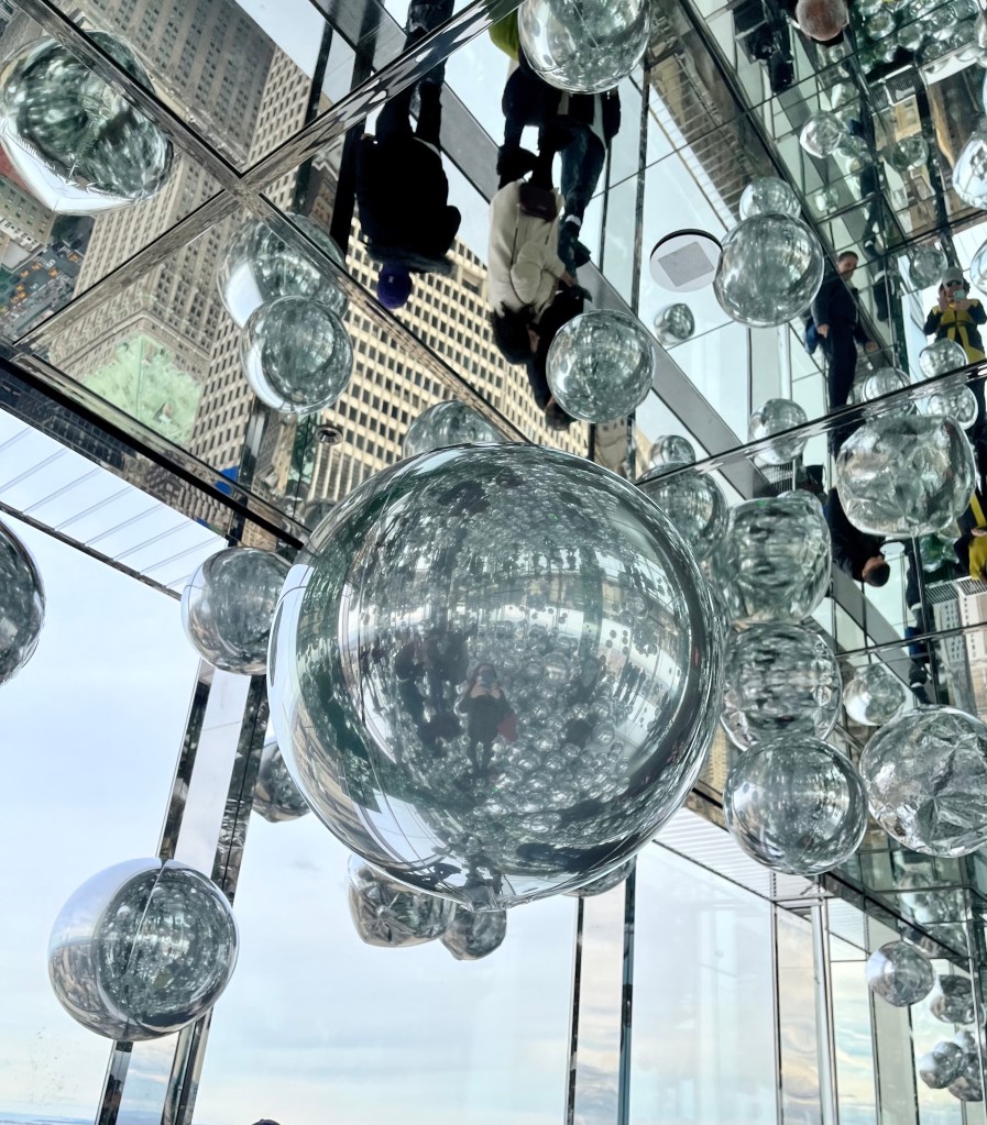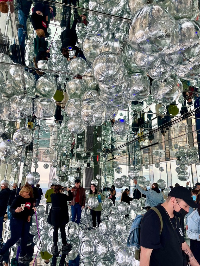 And for bonus activities, there is a room with Yayoi Kusana’s Clouds sculptures, a place to get your picture taken stepping out over the side of the building onto clear glass, with clear glass all around you (called, natch, Levitation), and a very trippy room filled with floating silver mylar globes called Air by Kenzo Digital (see some videos of what that is like here).