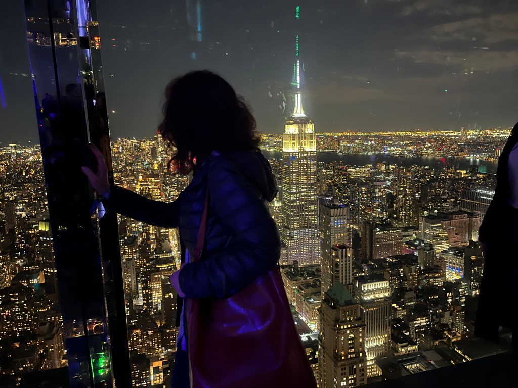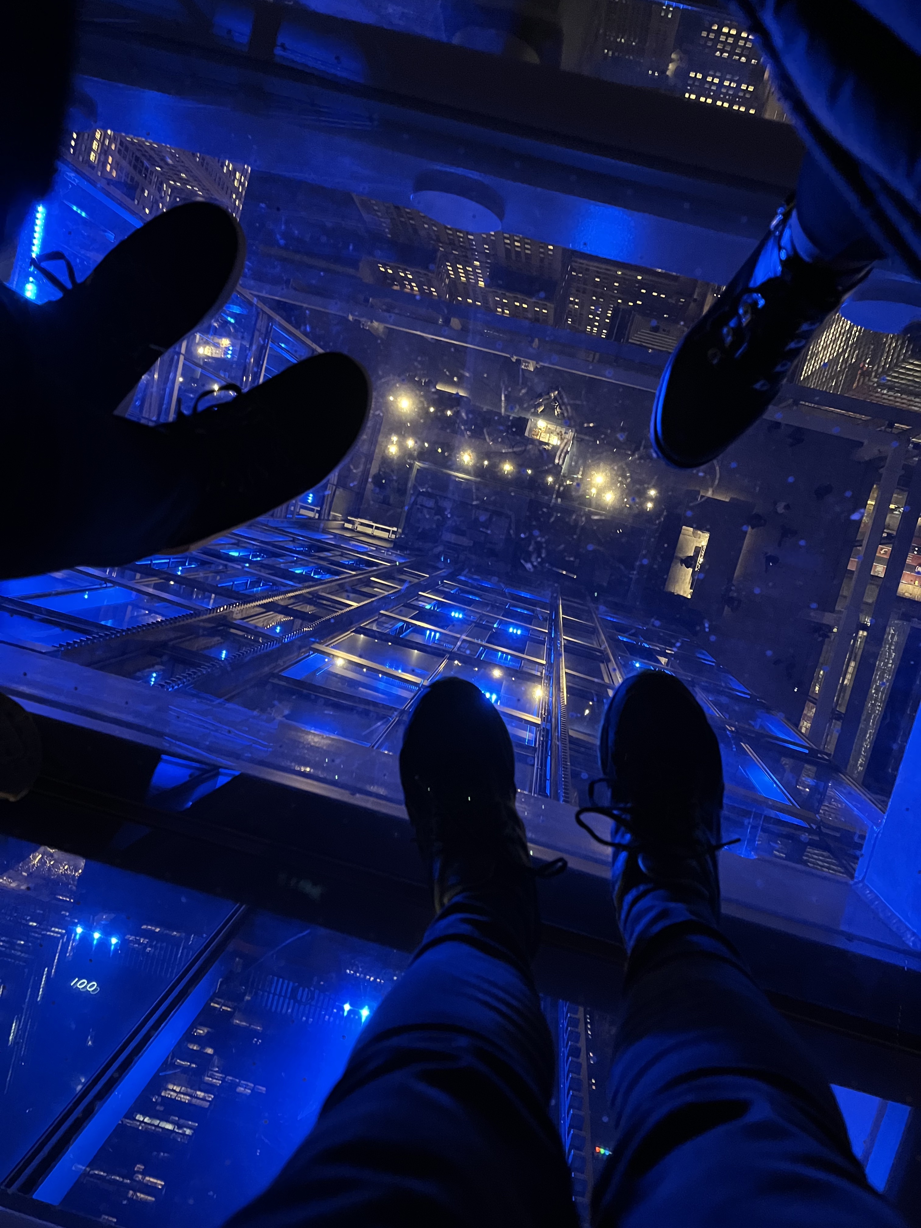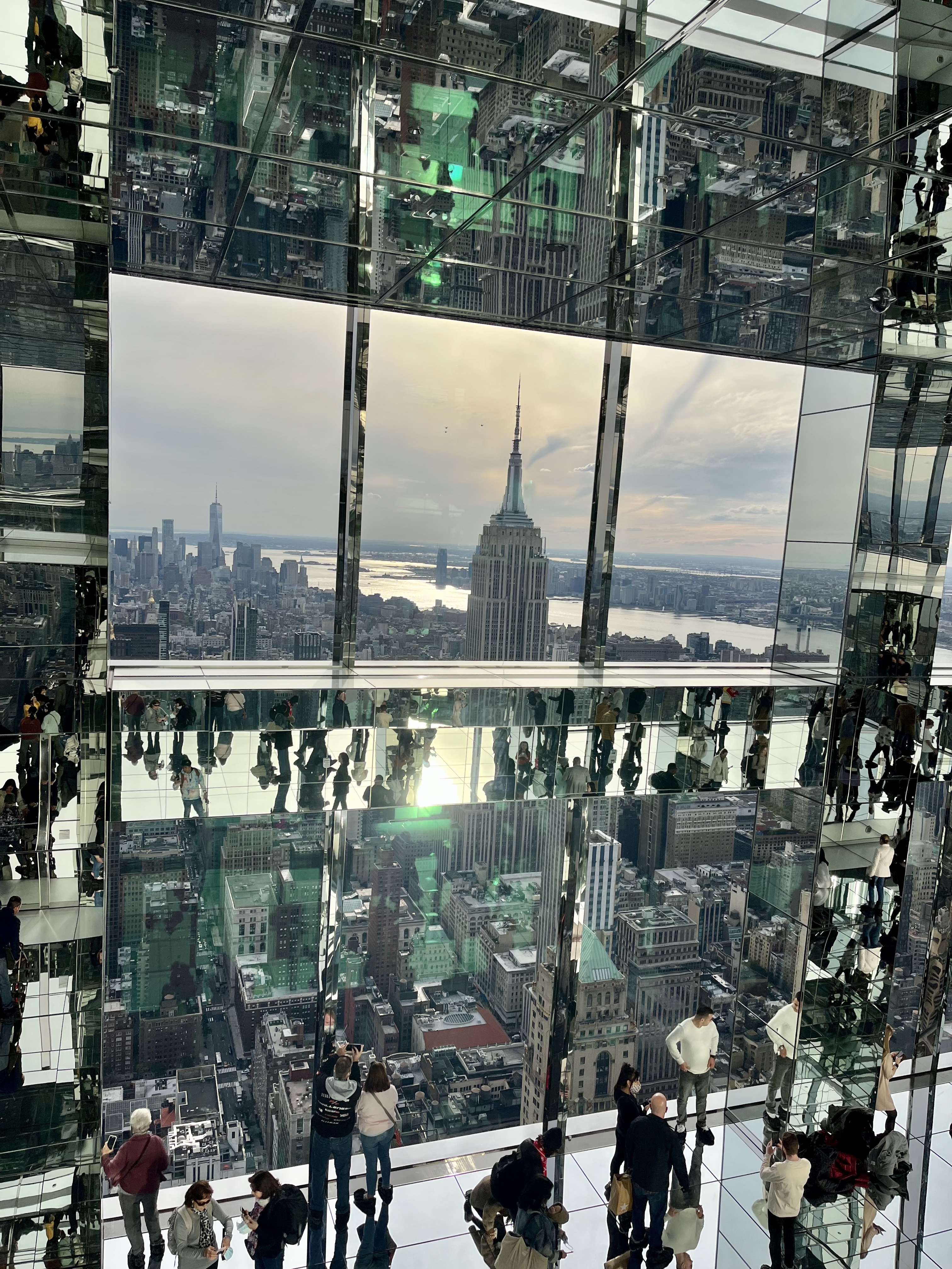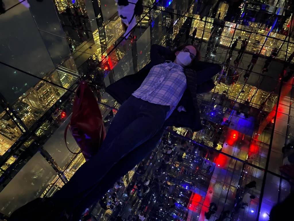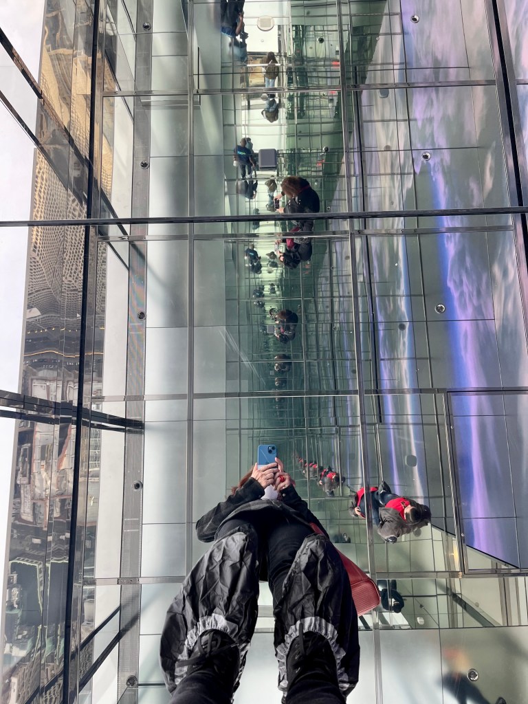 You go up to the 91st floor in a very fast elevator, and immediately see what is different about SUMMIT once you walk onto the first observation floor. There are floor to ceiling windows and you walk on mirrors (when you reserve, they do recommend that you not wear a skirt, for pretty obvious reasons!). The experience of seeing up and down, seemingly endlessly, is striking.