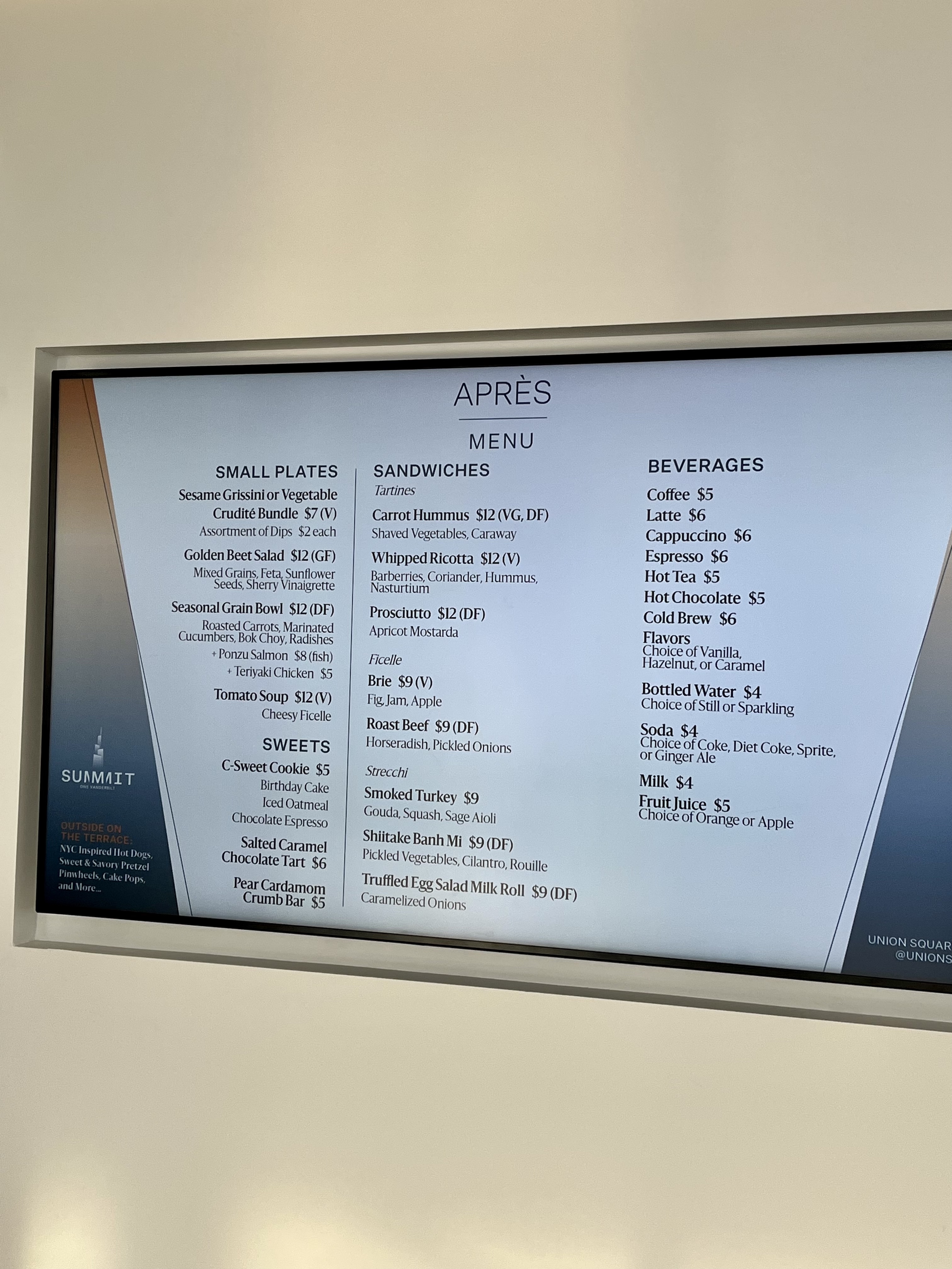 One more level up has a Danny Meyer cafe as well as an outdoor observation deck with clear barriers but open to the sky above.