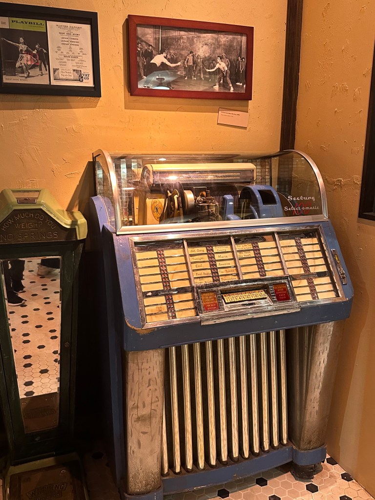Moving forward in time, there was a wonderful room dedicated to West Side Story, including a video highlighting the choreography. This was one of the many places you could insert yourself into the set, here behind Doc’s counter.