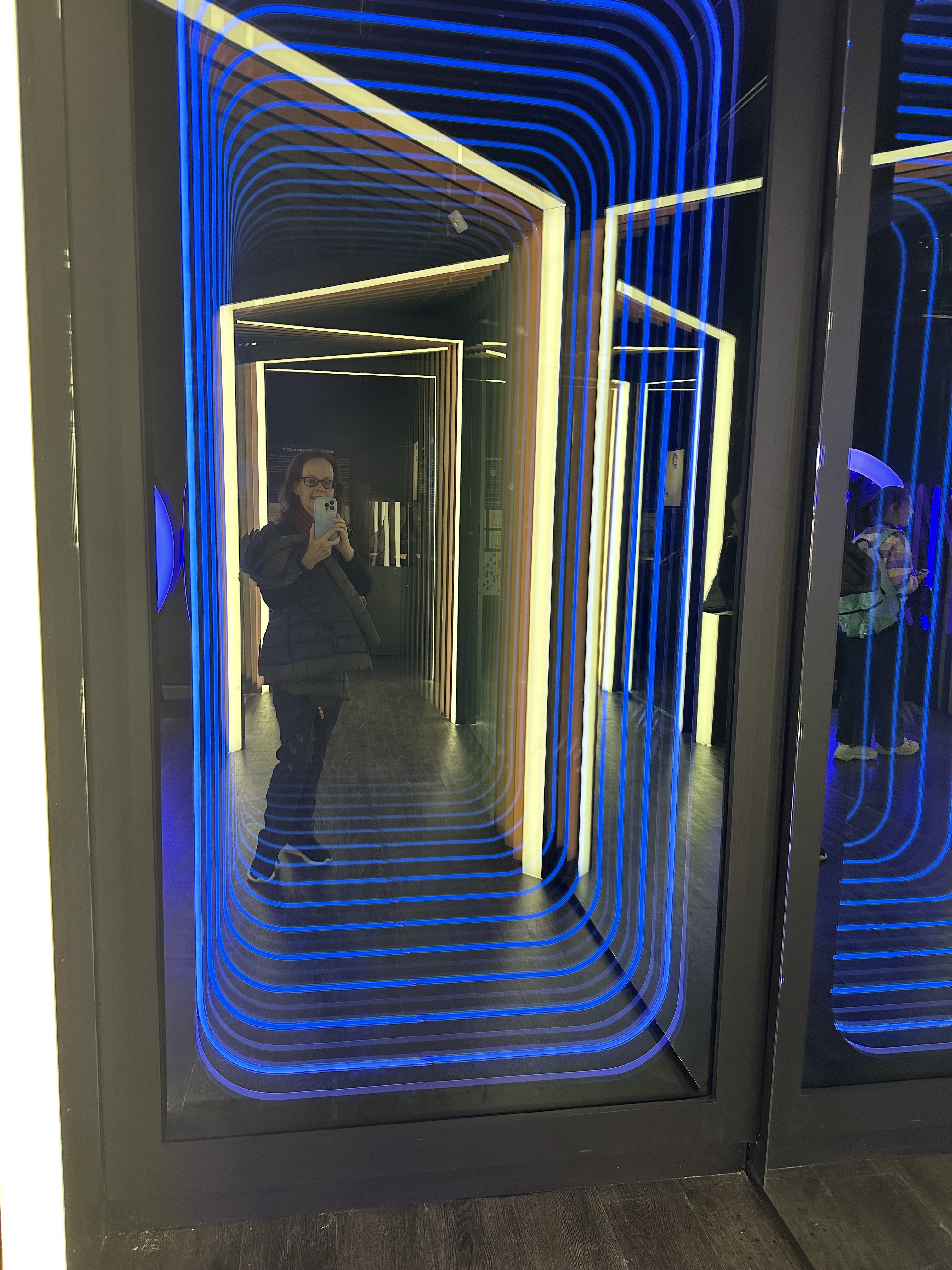 After “easing on down the road” from The Wiz, there was a large display about A Chorus Line, including this mirrored room, seen here on video.