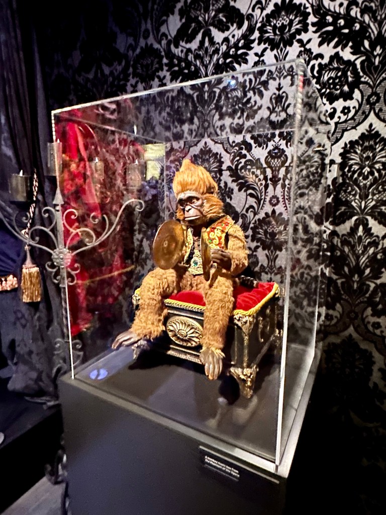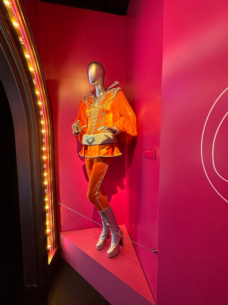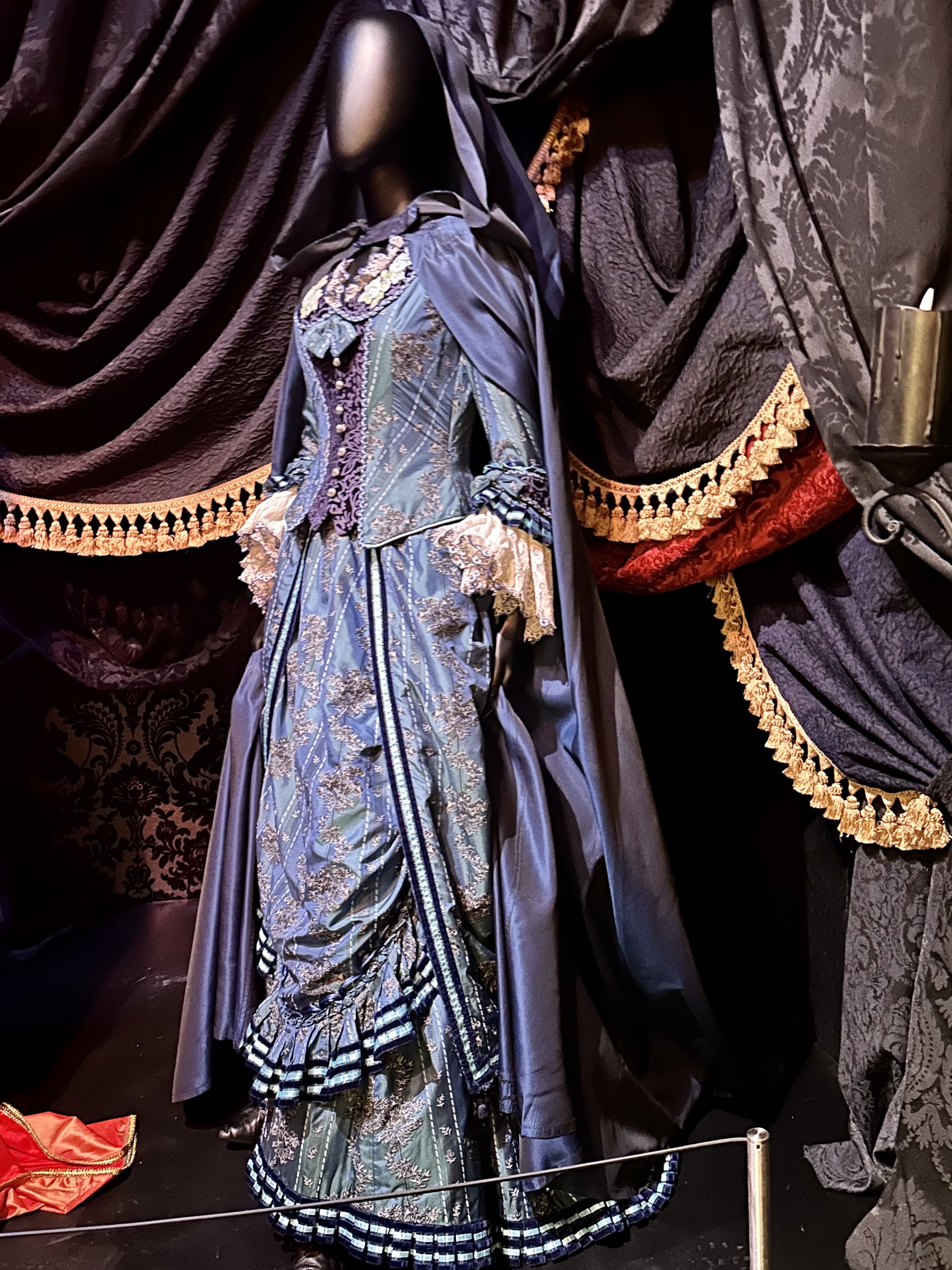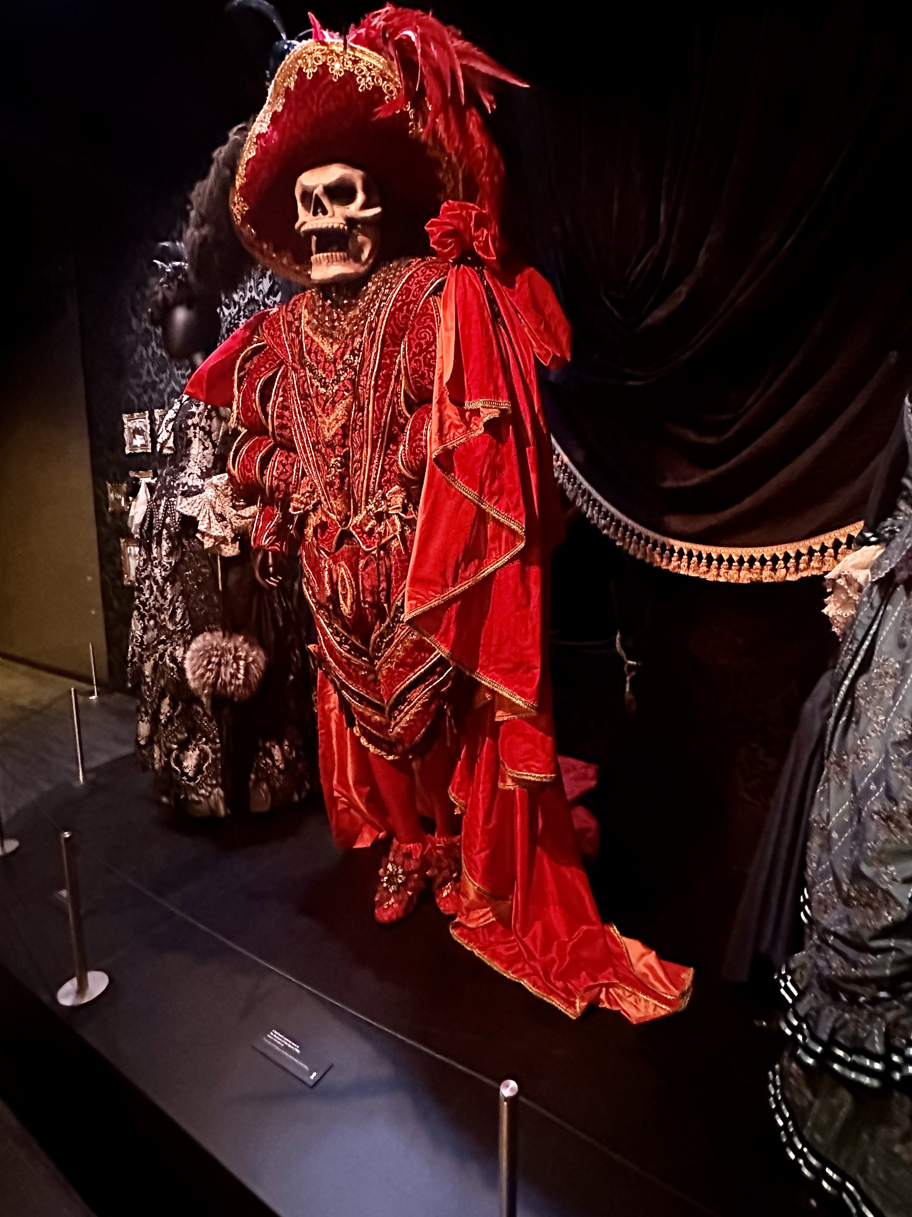 Heading into the 80’s, there are displays for Evita, Les Miserables, Miss Saigon, and of course the Phantom of the Opera. A large beaded curtain features a hidden Phantom mask that you can only see from a particular angle (see it here).