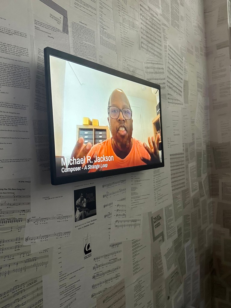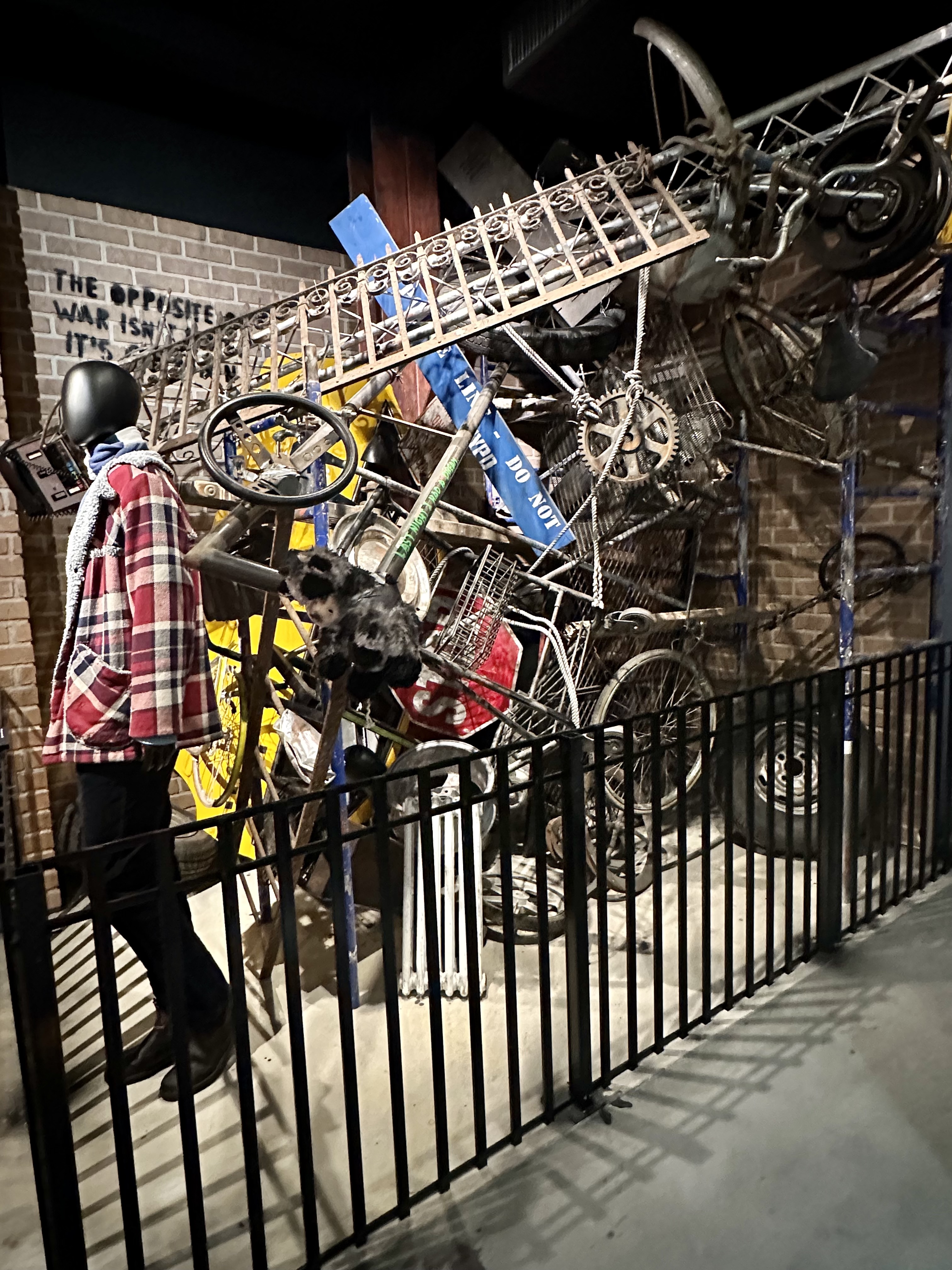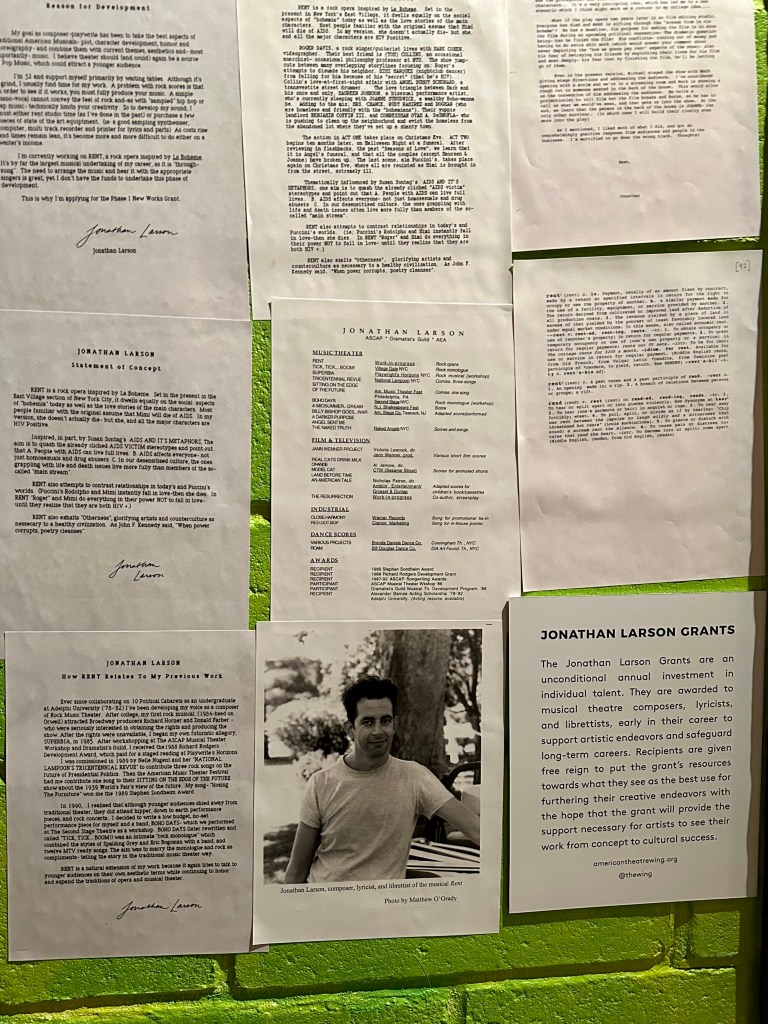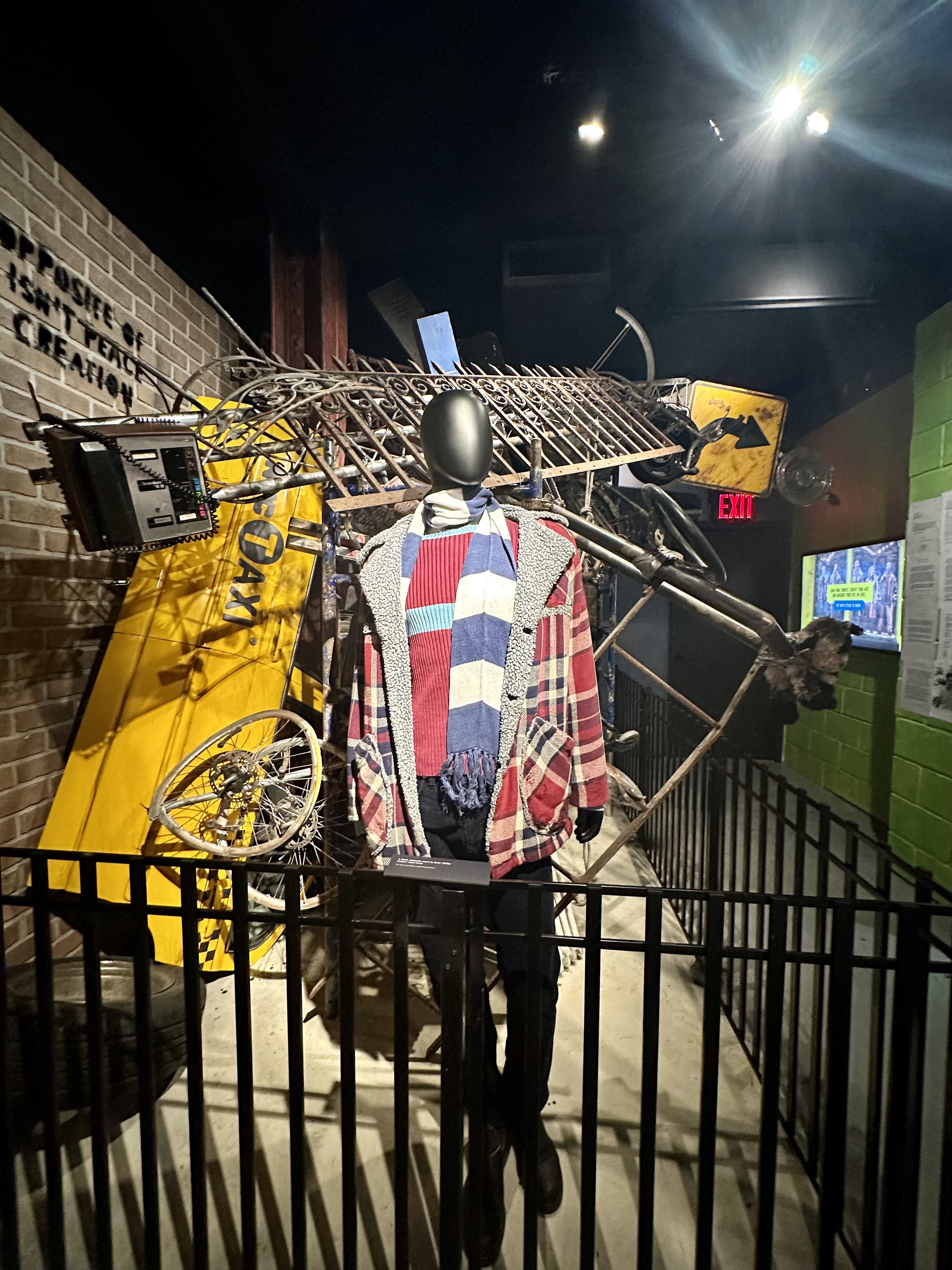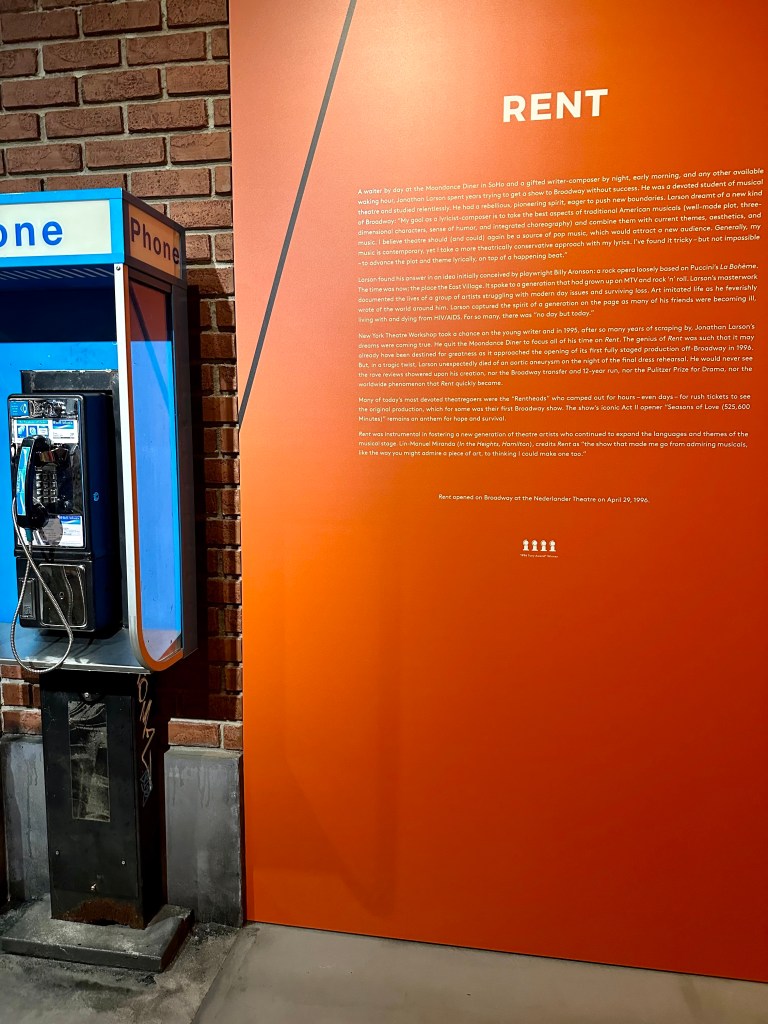 The next, large, room highlights Rent. I really enjoyed this room, as it had costumes, sets, props, cute interactive aspects (ring a doorbell and see who shows up at the door), a telephone where you can listen in to casting recollections, and a place to draw your own recollection and add it to the digital tribute wall.