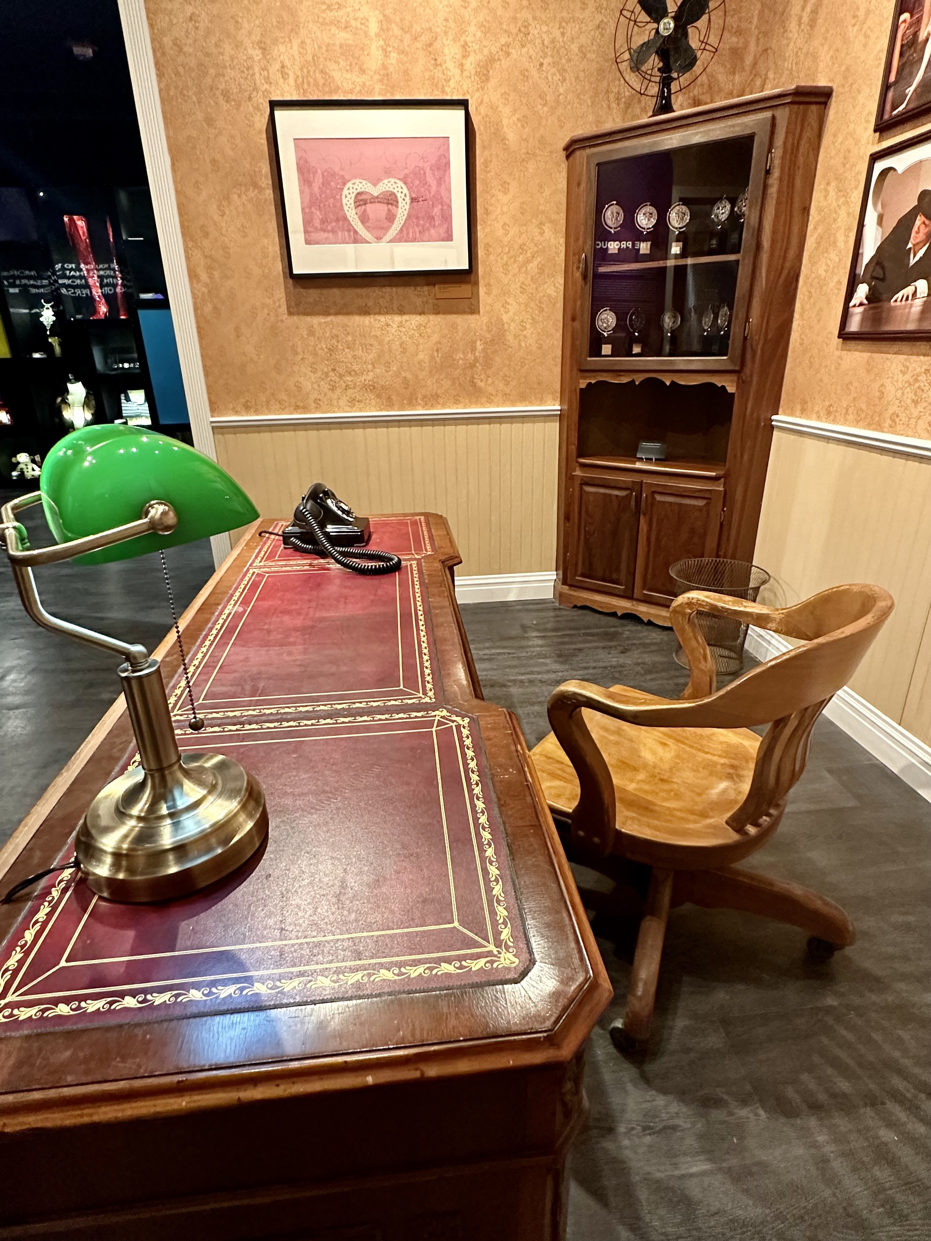 Moving forward, you can see props from The Lion King, Avenue Q, and The Producers (you can sit behind the desk).
