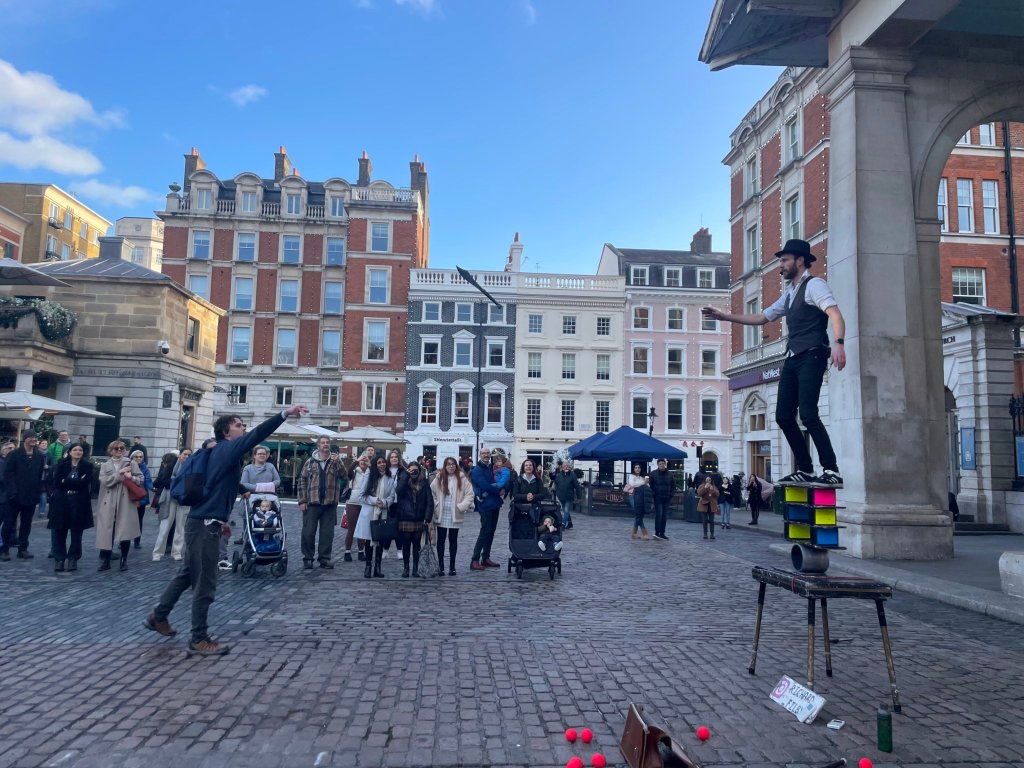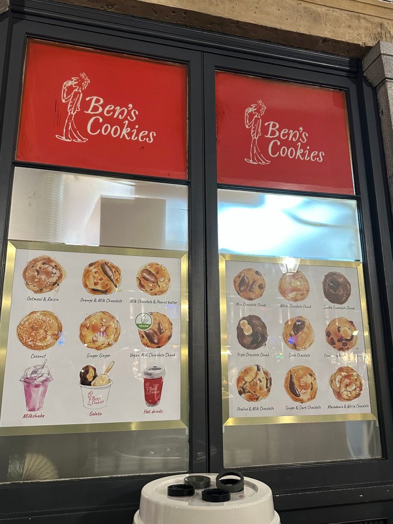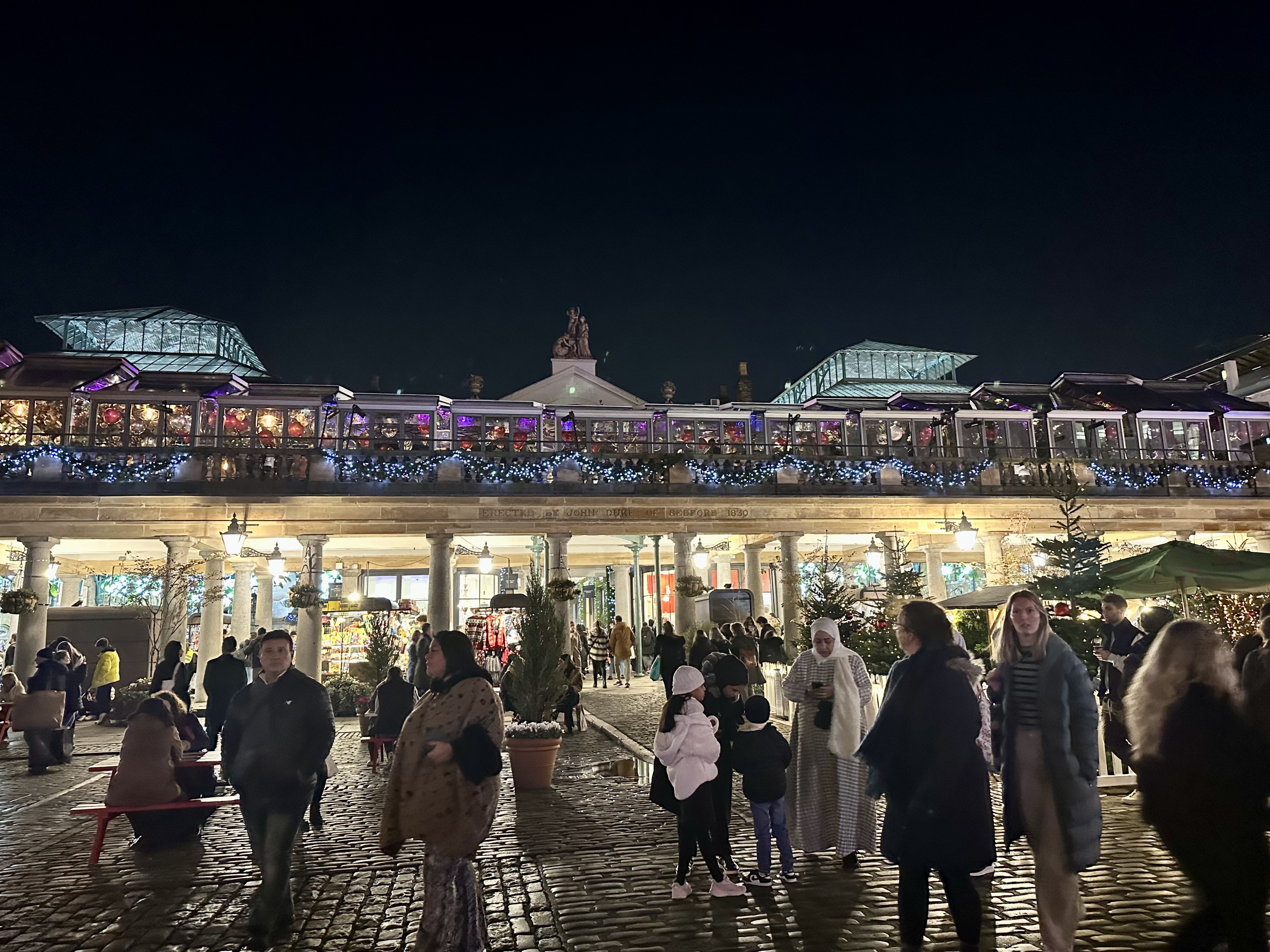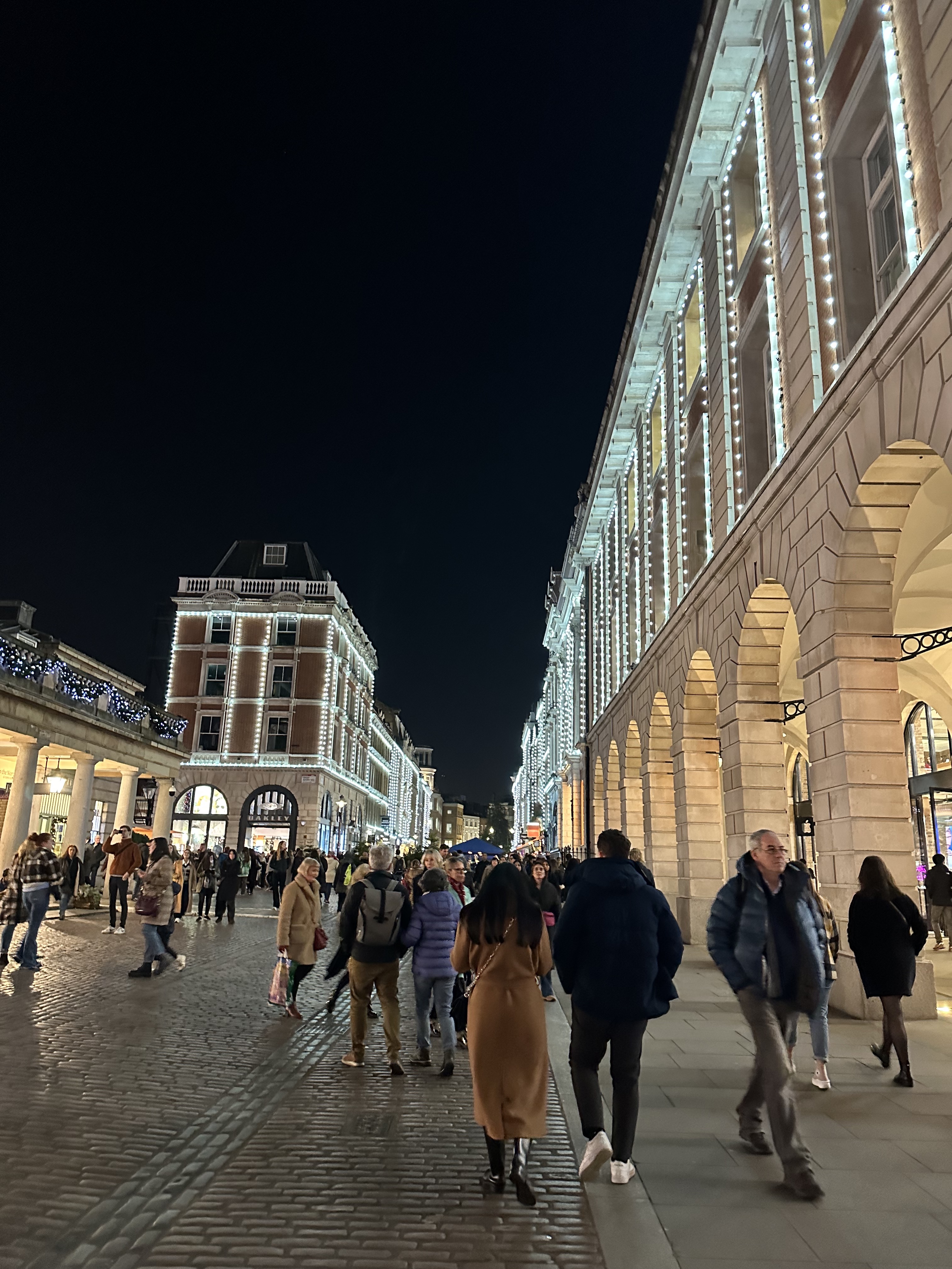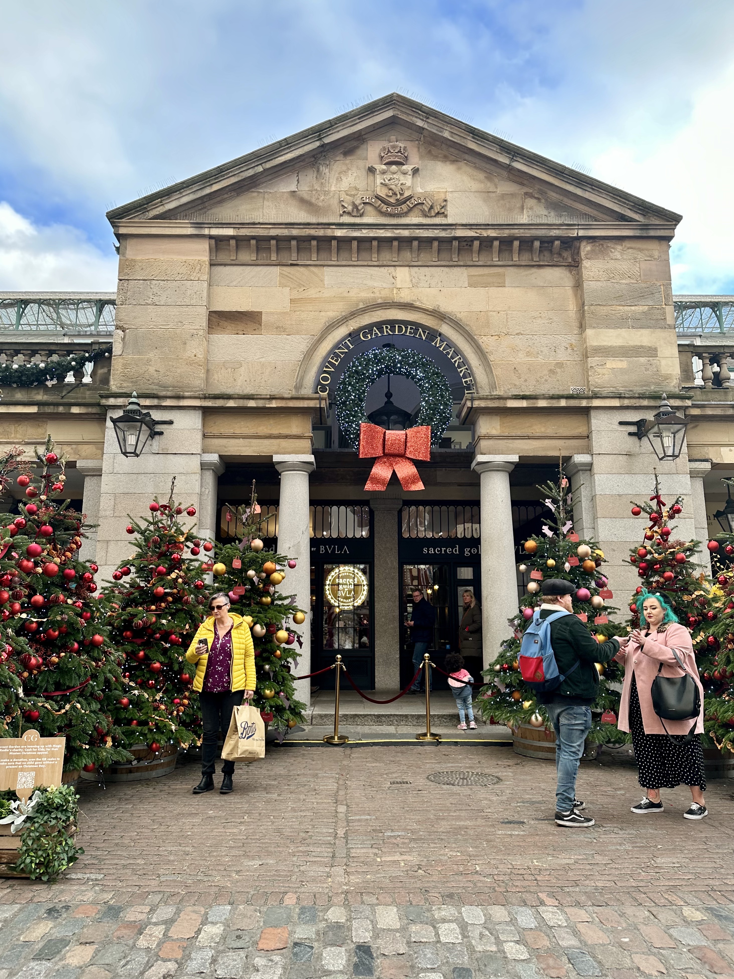 Covent Garden, one of my favorite places to wander in London, has not only a Holiday Market added to the normal plethora of shops, but also fantastic decor, entertaining buskers, and restaurants along with snacks. Props to their classy use of a disco ball, which gives a subtle snow effect at night (see it here). I thoroughly enjoyed seasonal gingerbread and along with Ben’s cookies, which are always there – and always worth the wait!