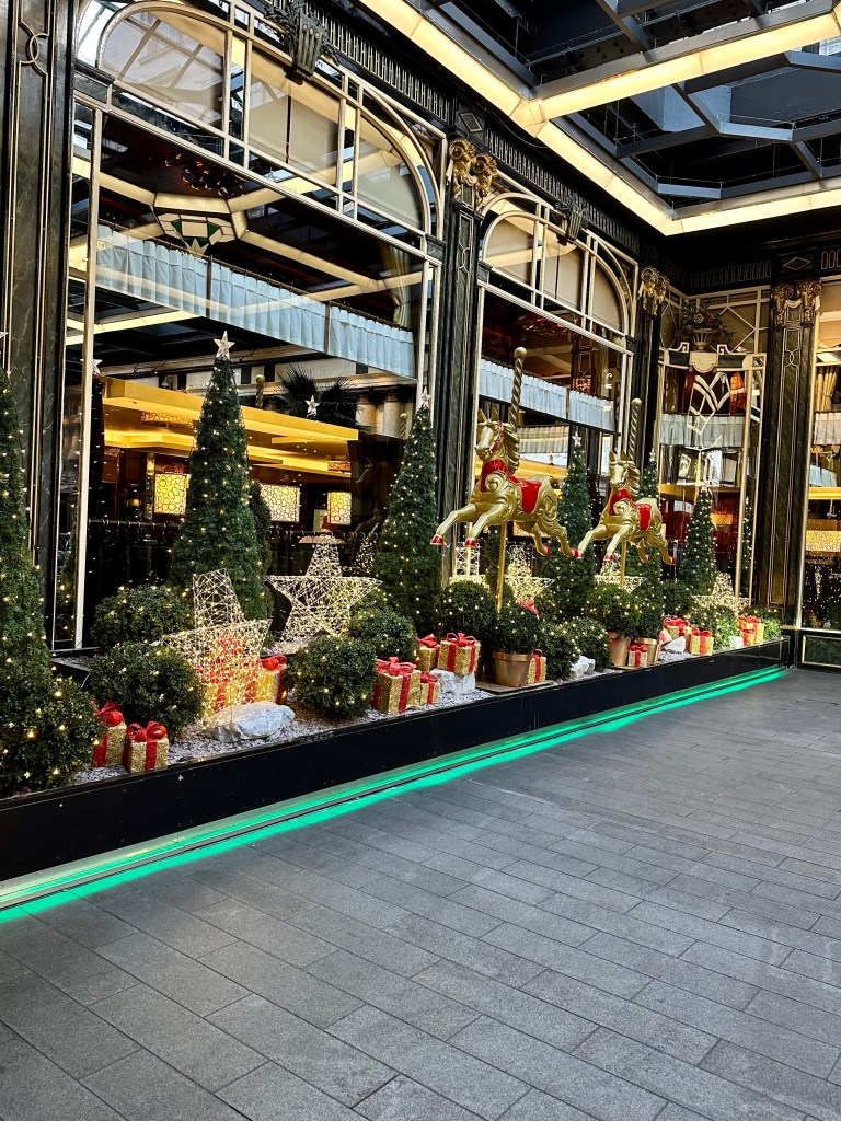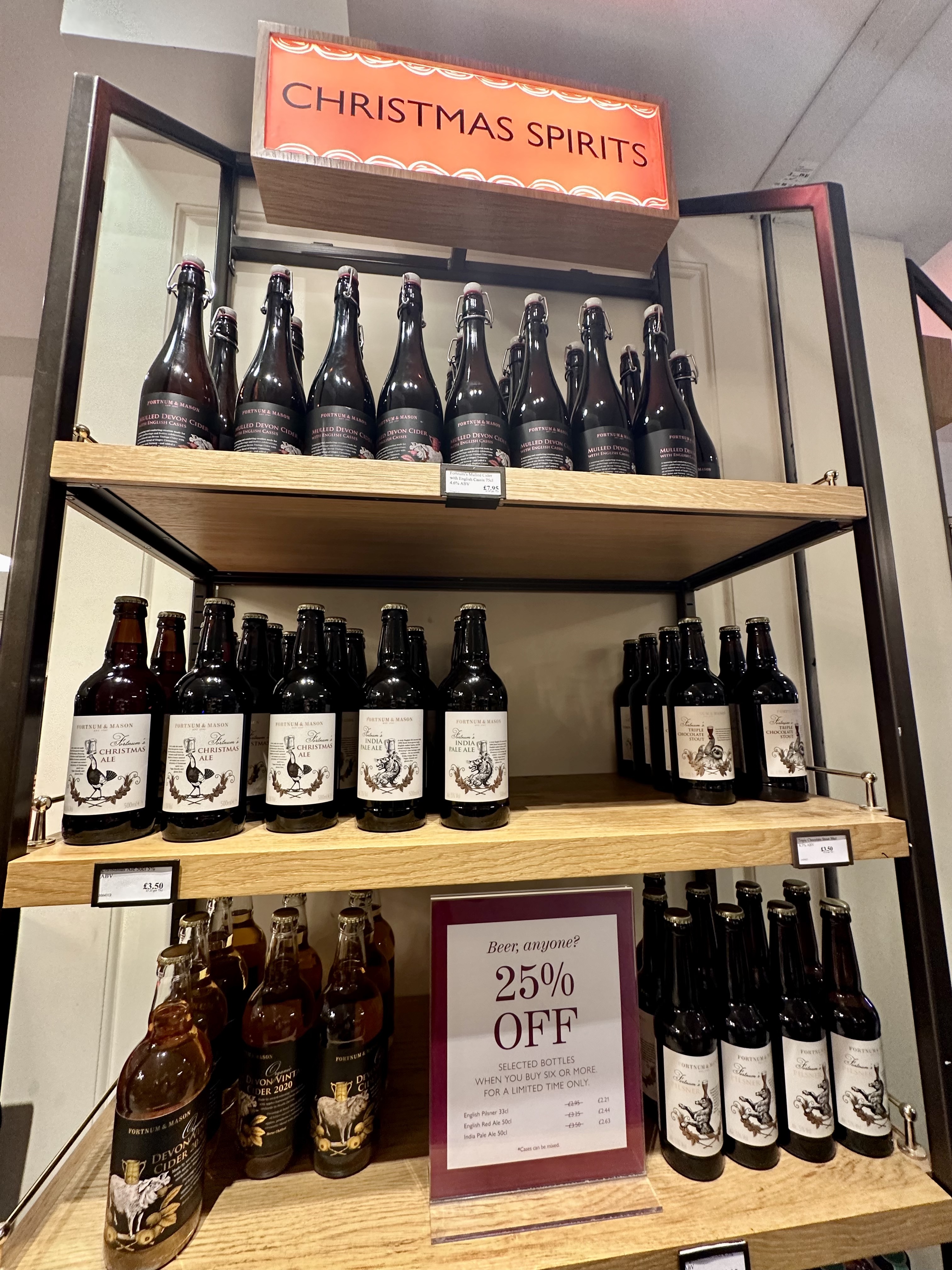Harrod’s was well-decorated as always, and I never go to London without including a lengthy visit to their food hall. In addition to looking at all the fun holiday foods, I was able to get several items to go for an impromptu lunch al fresco.