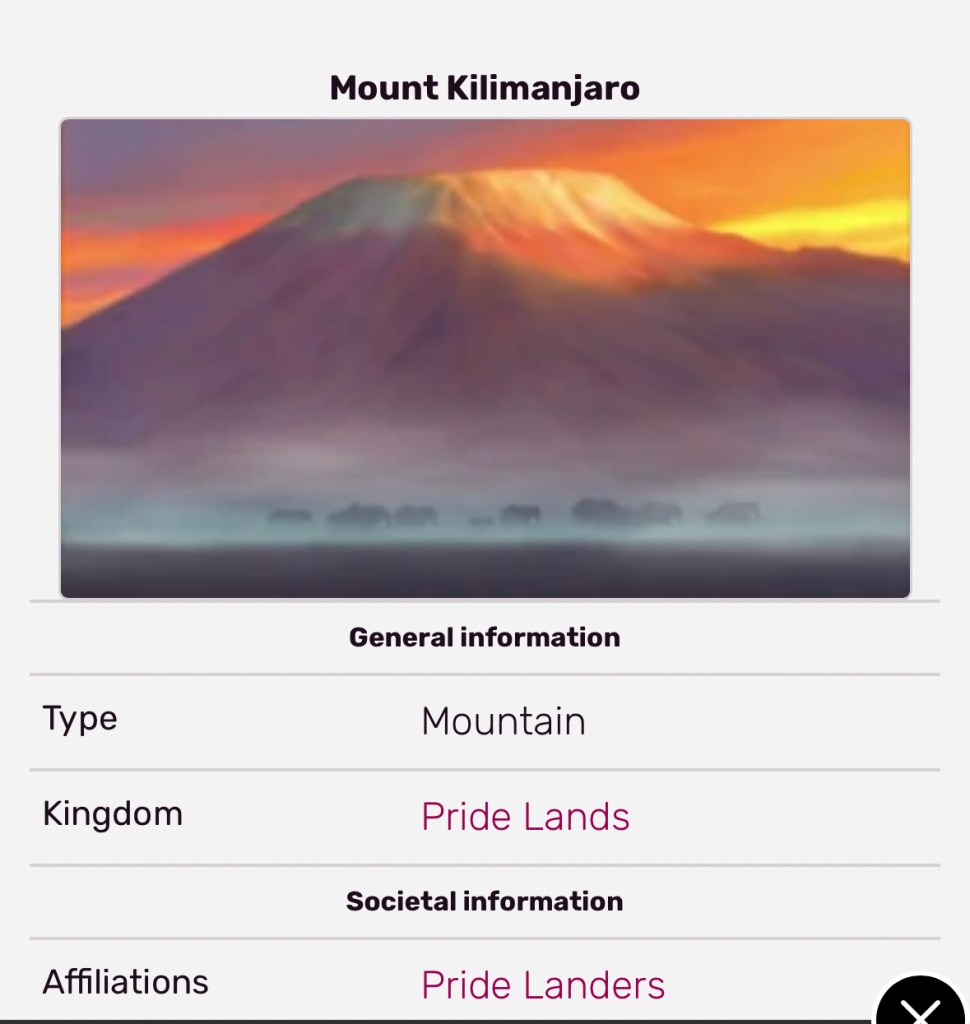 At the top of this post there is a screen grab of Mount Kilimanjaro as seen at the Disney attraction “Soarin’ Over the World.” And just above this paragraph is a Disney wiki entry showing that Mount Kilimanjaro appears in the opening sequence of Disney’s “The Lion King,” as animals travel for the presentation of Simba. This, plus a vague knowledge that Hemingway wrote a book called “The Snows of Kilimanjaro,” was my primary knowledge (absurdly limited! Kilimanjaro is in “Pride Lands” rather than Tanzania) about Kilimanjaro until a family member who enjoys hiking and I started to talk about combining her love for hiking with my desire to do a photo safari somewhere in Africa.