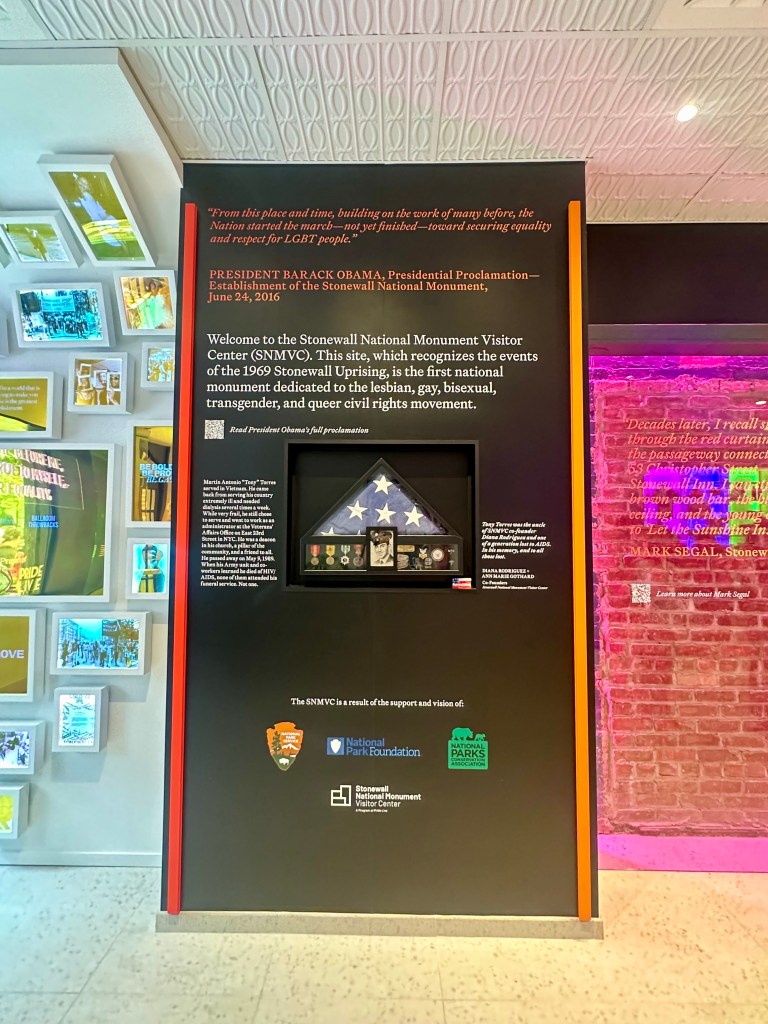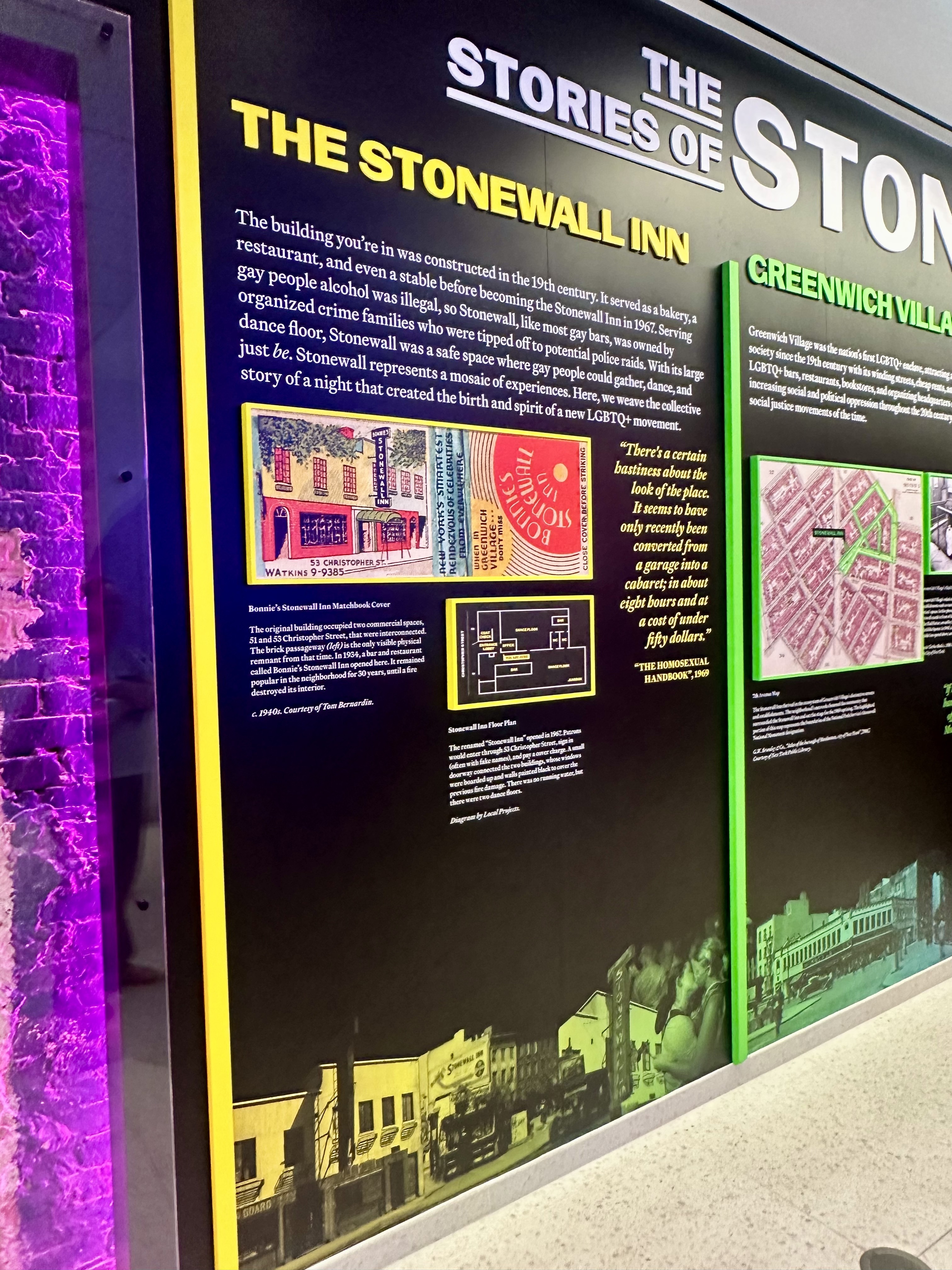 When President Obama recognized Stonewall National Monument as part of the National Park Service in 2016, the entire block on Christopher Street between 7th Avenue and Waverly Place became the first official National Park Service unit dedicated to telling the story of LGBTQIA+ Americans. In June of 2024, a Visitor Center opened up adjacent to the Stonewall Inn, and I got a reservation (free; recommended but walk ins are also welcomed) and checked out this new addition to the many places we can go in New York City to learn about our past and think about our present and future.