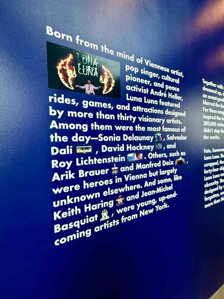 Luna Luna was an open-air museum/amusement park in Hamburg, West Germany that ran from June 4 to August 31, 1987. Created by Austrian artist André Heller, it was an attempt to “create a traveling terrain of modern art, that in the centuries-old principle of the fairground involves people of all ages and educational levels in playful acts”. Heller commissioned around 30 contemporary artists to design the attractions, including Jean-Michel Basquiat, Keith Haring, Roy Lichtenstein, Salvador Dalí, David Hockney, Kenny Scharf, Roland Topor, Jean Tinguely, and Sonia Delaunay. It was rediscovered and relaunched as a global tour 2023 by Drake (yes, the Canadian singer/rapper) and his entertainment firm DreamCrew with production assistance from Live Nation, and it is currently in New York City’s Hudson Yards at The Shed through March 16, 2025. In this version, called Luna Luna: Forgotten Fantasy, about half of the original 30 attractions are on display, and many cannot be touched (or ridden) due to their fragility over time. I had a fantastic time when I went recently, and it was perhaps the most joyful immersive art I have ever experienced.