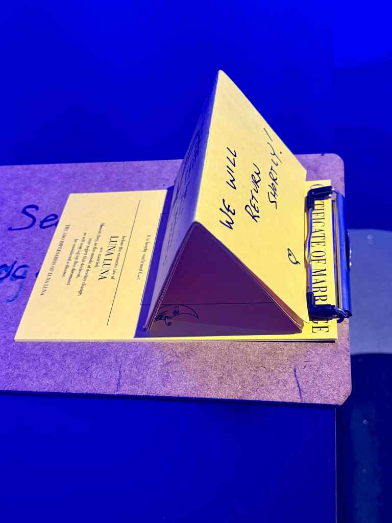 Perhaps my favorite thing was the wedding chapel, conceived by André Heller. Couples are invited to take part in a whimsical wedding ceremony (for example, the exchange of rings involves throwing a hoop, or ring, around the forearm of your partner) and others are invited to be witnesses and shake bells as a form of approval several times during the ceremony. The couple then gets a polaroid picture of themselves and a “marriage certificate.” I took photos and videos of the ceremony I witnessed and then was able to AirDrop all the photos and videos to the couple afterwards (and no, I didn’t know them before this!).