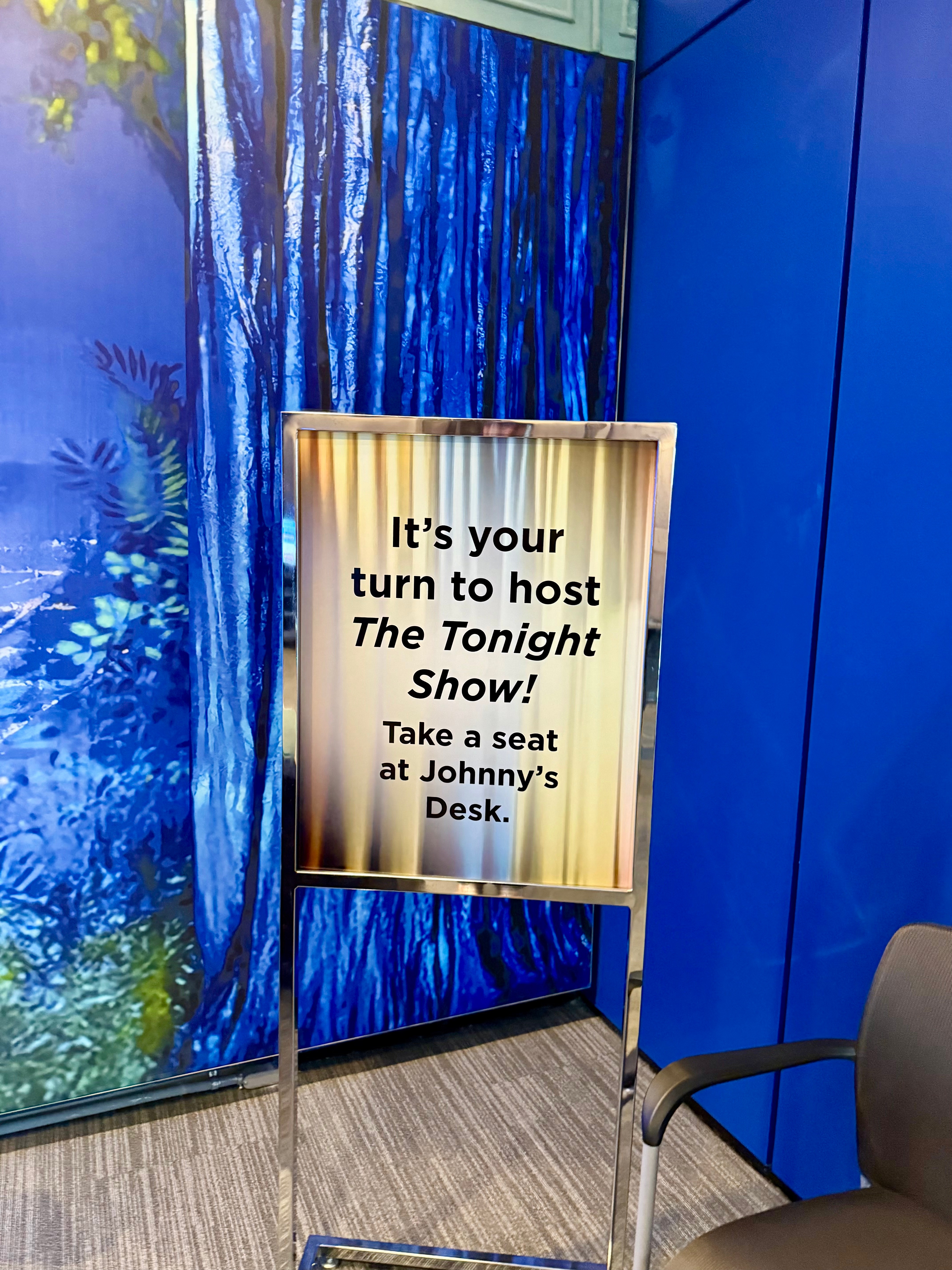 Heading up (there is an elevator), there is an exhibit about Johnny Carson’s The Tonight Show (which ran from 1972-1992, taped in Burbank, California). They were playing the last episode he ever aired, and you could sit at his desk (another photo op!), or on the sofa where so many famous guests sat, or in seats from the studio audience.
