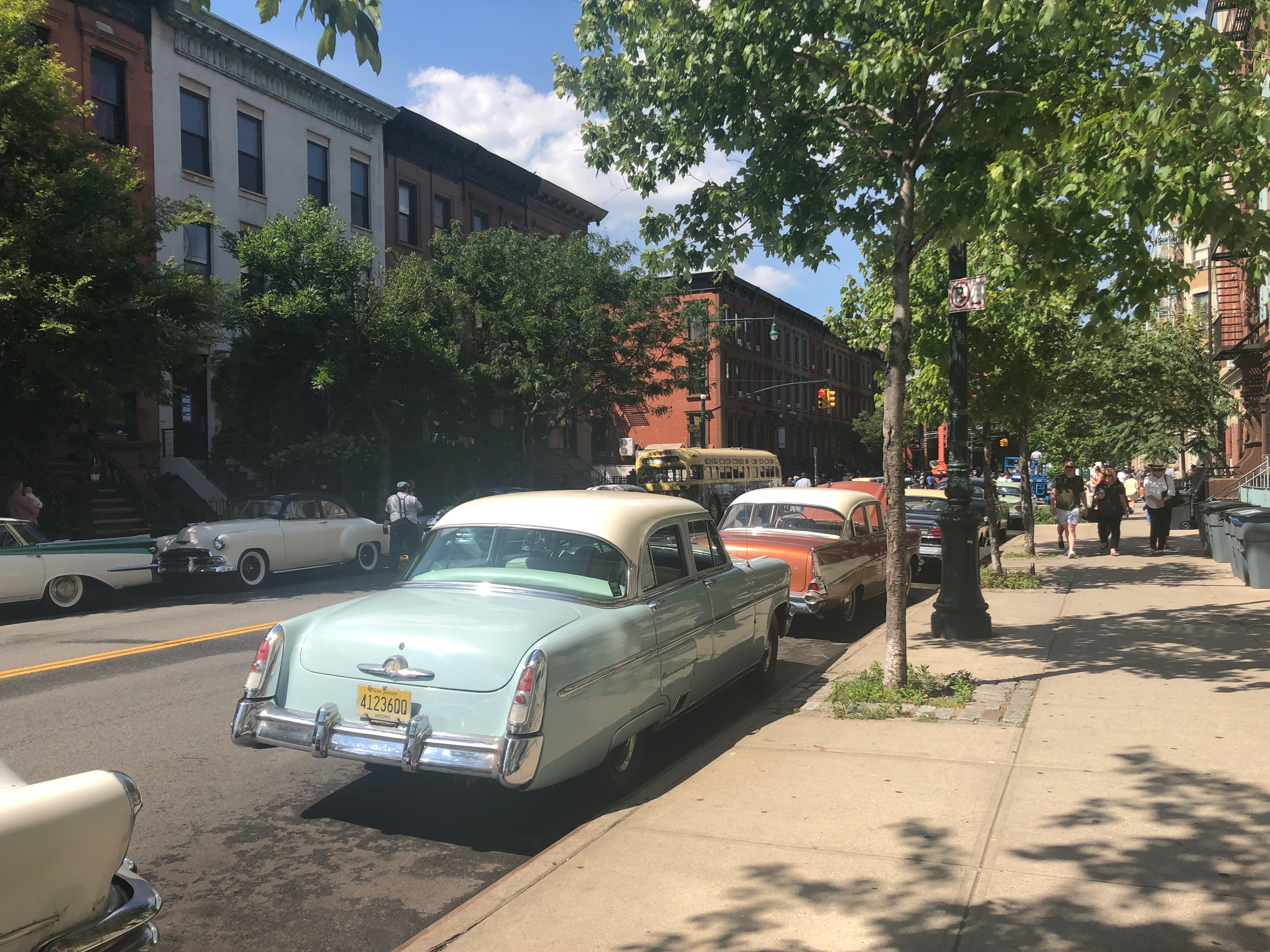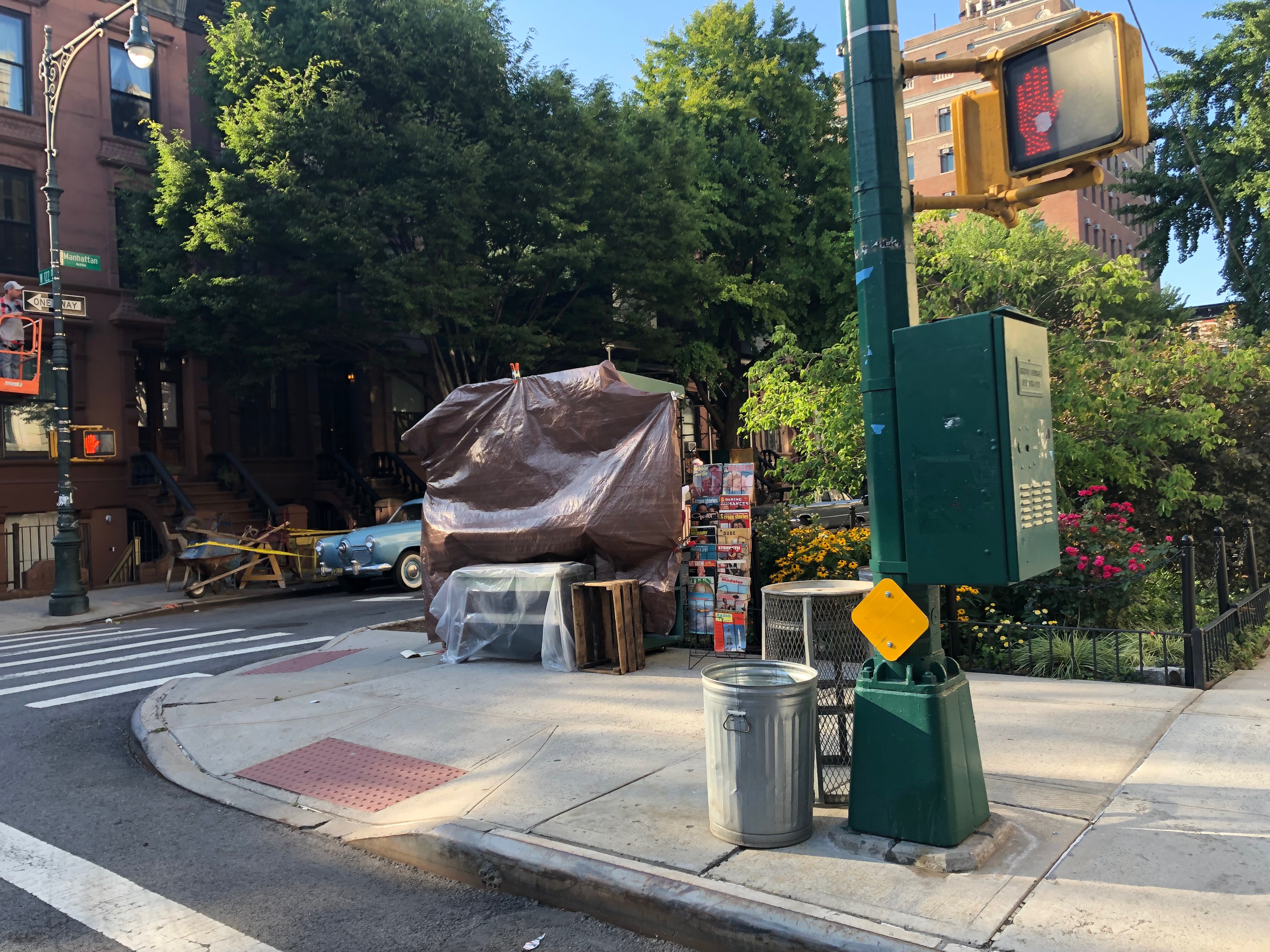 I saw the new 2021 remake of West Side Story last week, and it made me think of when they were shooting some exterior scenes in Harlem. This was in the “before times” – before COVID-19 lockdowns and restrictions -in the summer of 2019, July 13 and 14th. It was hot when they were shooting “America,” with temperatures in the 90’s. They had (I believe) wrapped that scene earlier on July 14th, and it was shot on St. Nicholas Avenue between 111th and 113th. As with most shots on location, when not actively filming, you are free to be in the area and look at exterior sets and equipment.