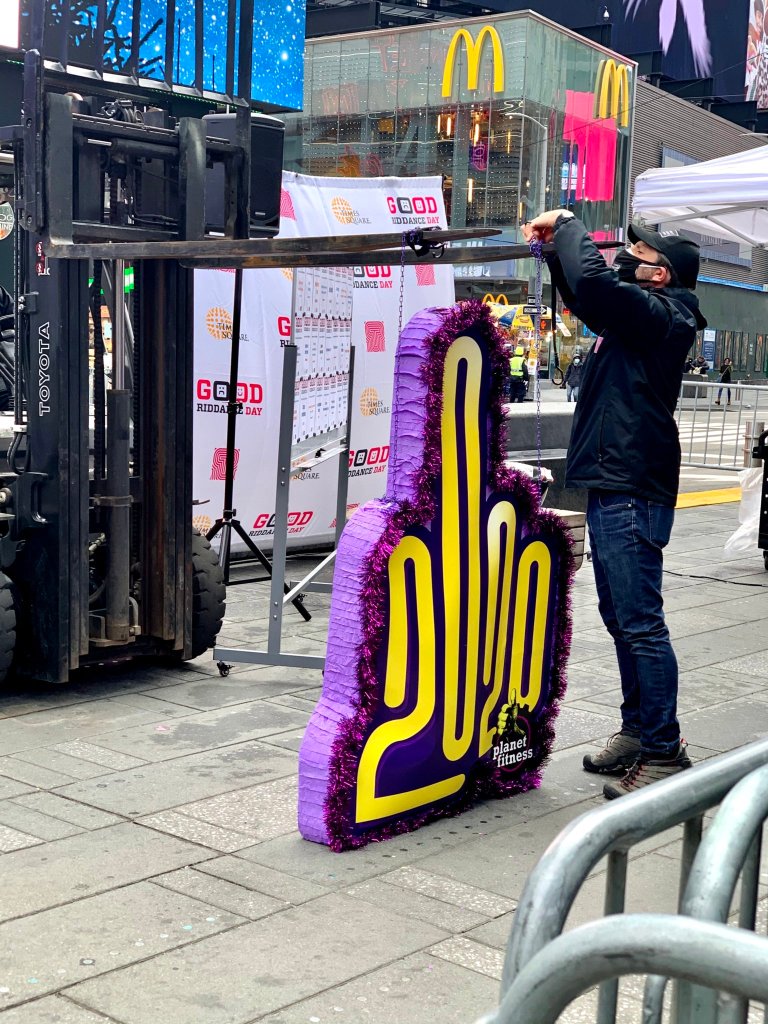 My favorite year-end event in Times Square is the arrival of the numerals that will replace the previous year’s numbers. They sit on the ground in Times Square for just a few days, and you can take your photo with them. You can find out when they will be available each year on the official Times Square website, but they are generally there for four or five days, and around the middle of the month (for 2024, they were there December 18-22). You might have to wait a bit for your turn at a photo, but if you can be there earlier in the day the area is much less crowded.