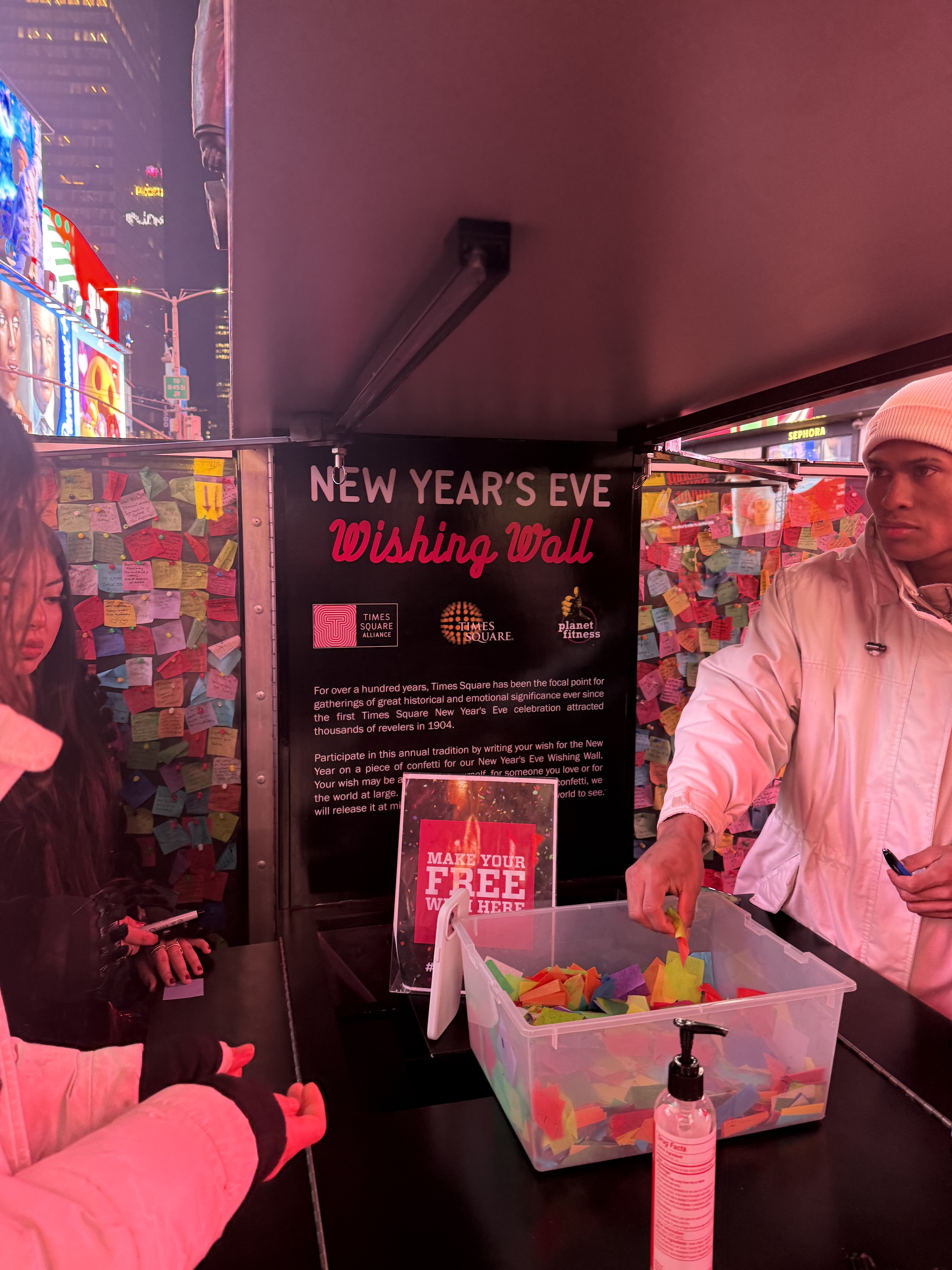 Another activity in Times Square that I really love is the New Year’s Eve Wishing Wall. For most of the month of December (for 2024, December 2-29) you can write wishes on little slips of tissue paper, and they are saved to throw among all the confetti (over one ton is dropped!) that is released at midnight on New Year’s Eve onto Times Square. I find this to be a wonderful way to crystallize my hopes as I enter a new year. This is fun to do in person, of course, but the Times Square Website also allows you to type in wishes from anywhere and they will also be part of the confetti (find it here).
