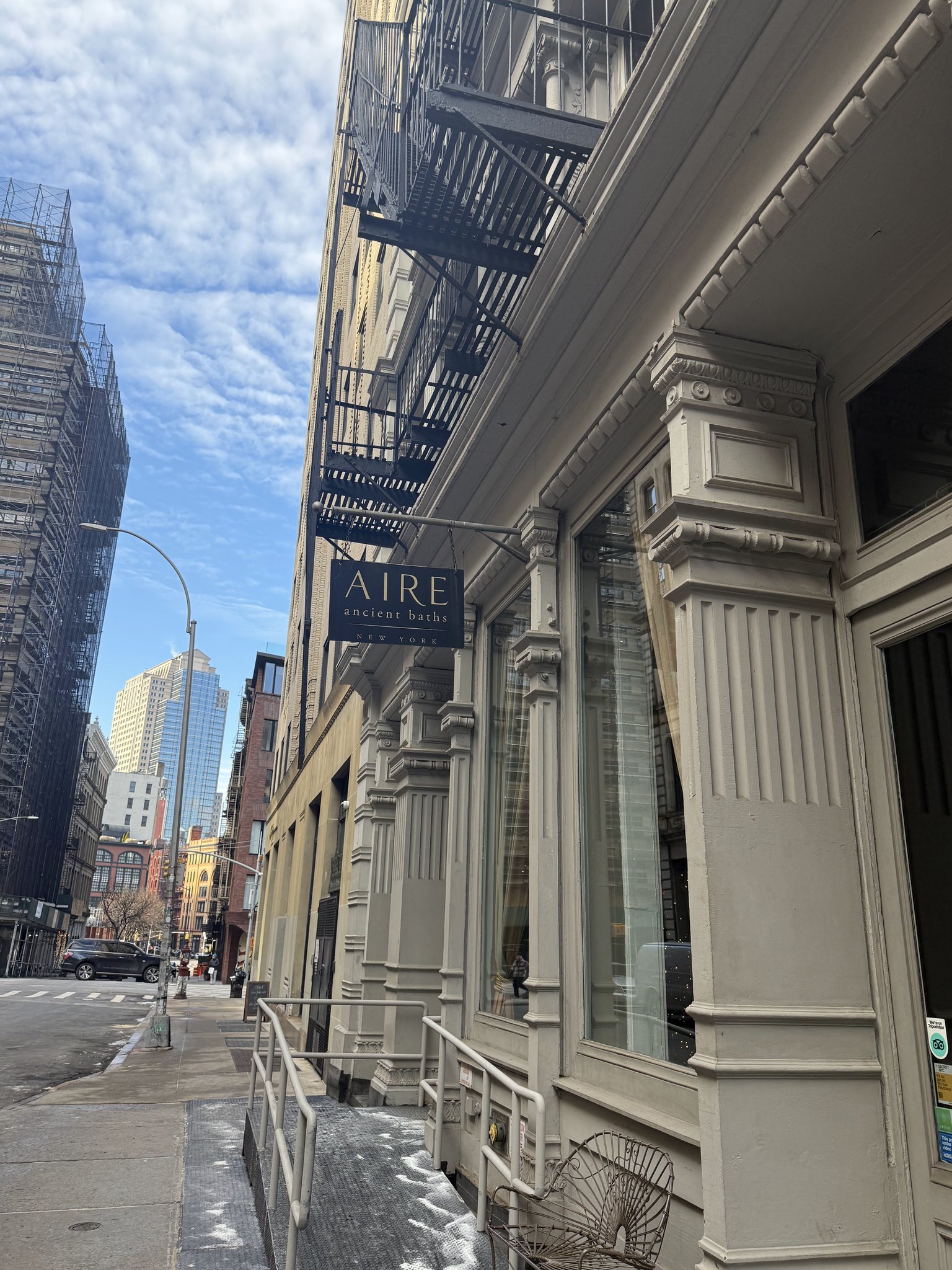 I do enjoy a great spa experience, and there are plenty to enjoy in New York City. Previously I have written about a day at the QC NY spa on Governors Island and just recently about having a Aescape robot massage at iLy Only Spa at the New York Lotte Hotel. But my daughters know that the the one gift that I am always thrilled to get is a massage plus baths experience at Aire Ancient Baths. I first went to Aire many years ago (maybe 2017?) and have been at least once or twice a year since then. It was my first massage experience when things started reopening after covid lockdown (we were still wearing masks). But I have never blogged about it because you are not allowed to take any photos whatsoever and your phone is locked up. The only photos I have are of the outside of the building. The original Aire in NYC is in Tribeca, and that was the only one I had experienced until one opened walking distance from me, on the Upper East Side, this month (March of 2025). They are not identical, and I kept comparing the two locations while in the new space. This made me think that even without my own photos I might be able to help others wanting to go but unsure of what location to select. All photos from inside the spas are taken from the Aire website.