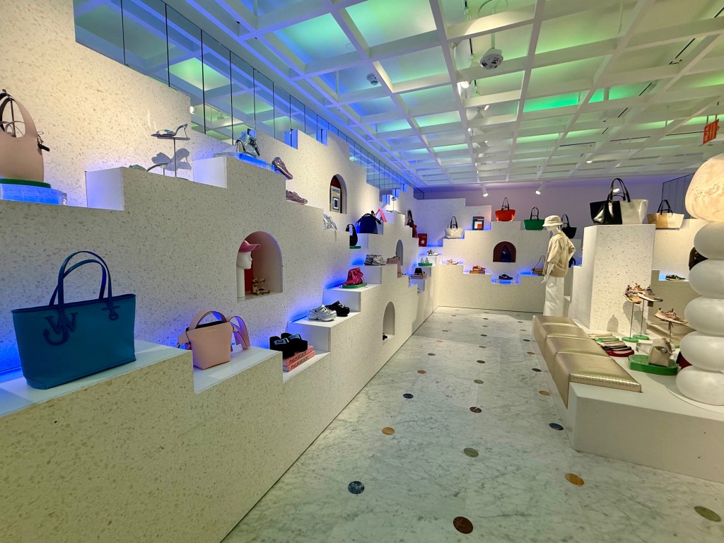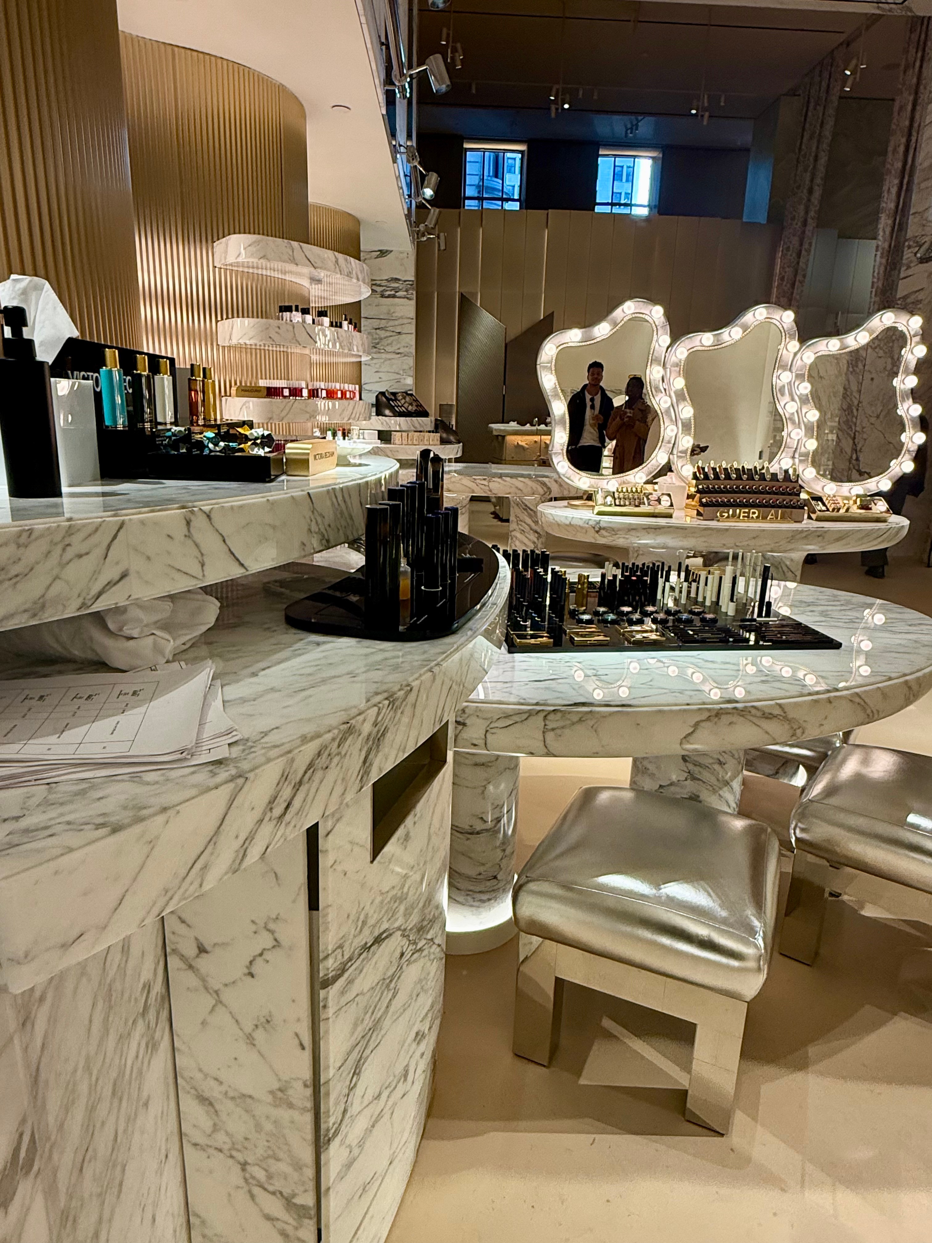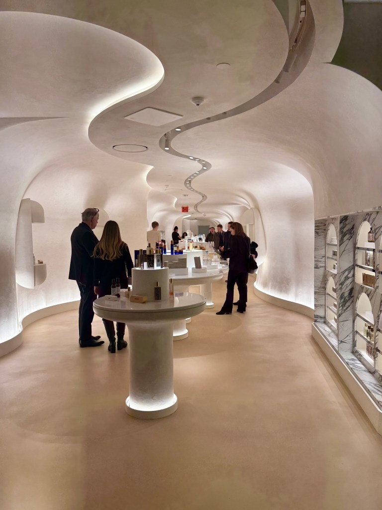 Continuing along on the second level, there is a passageway to get to the part of the store that faces Wall Street. It is set up as the beauty section, including some treatment areas, and a champagne bar.
