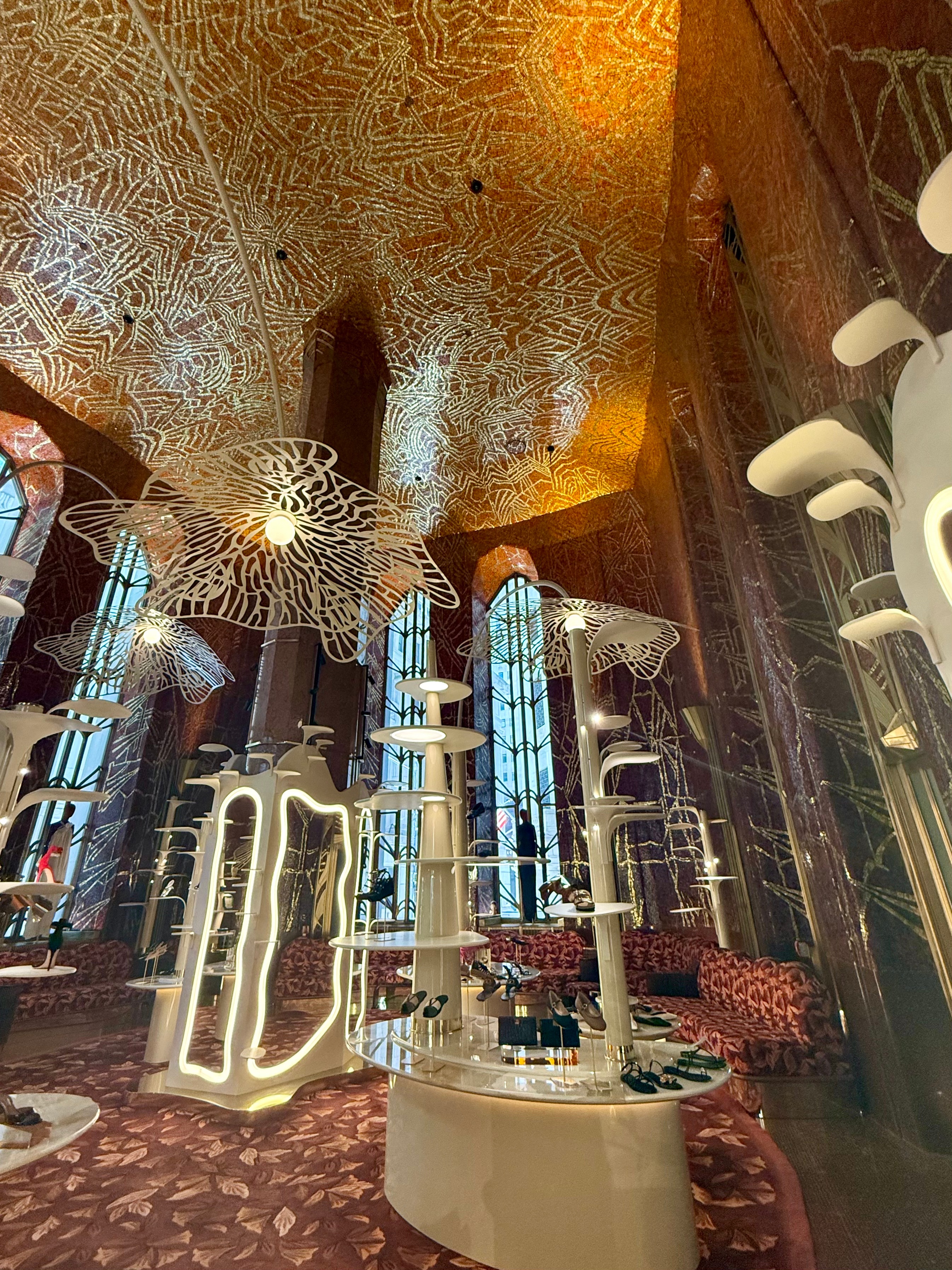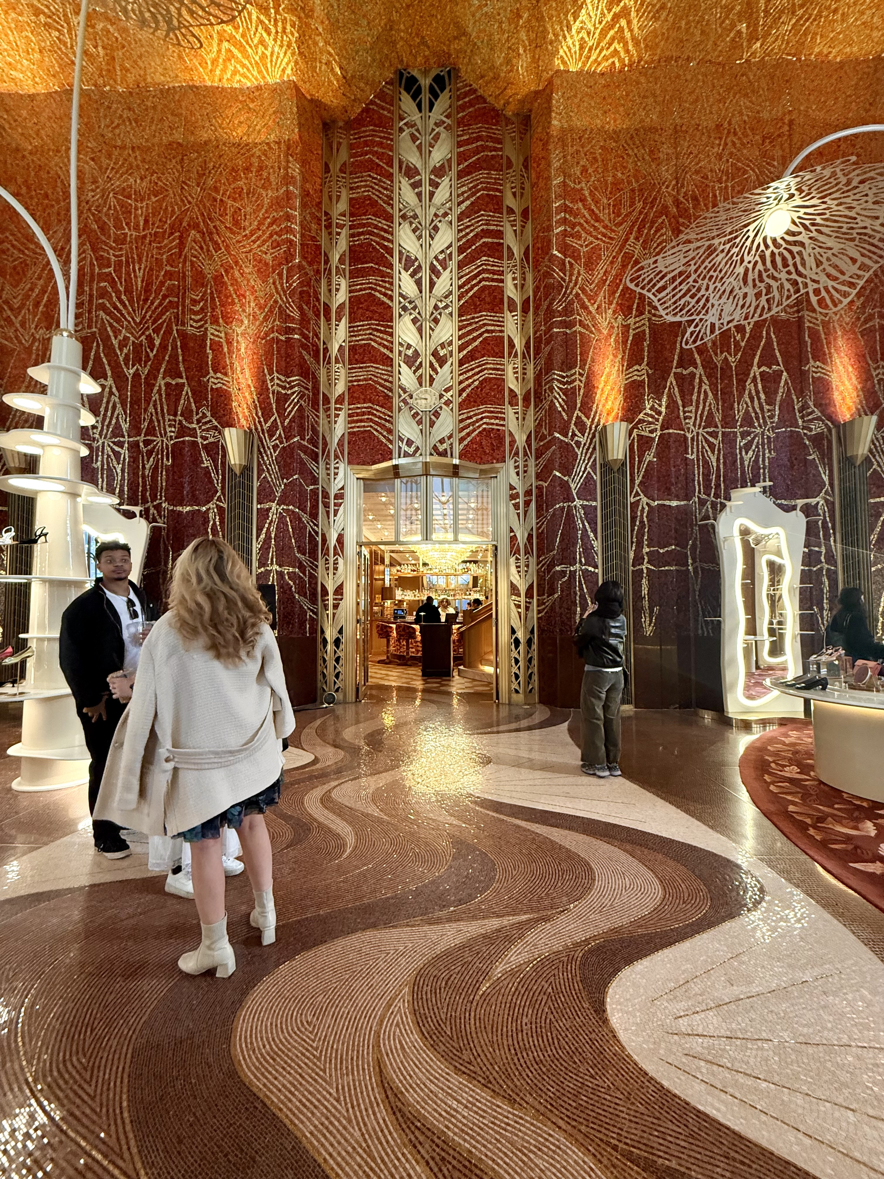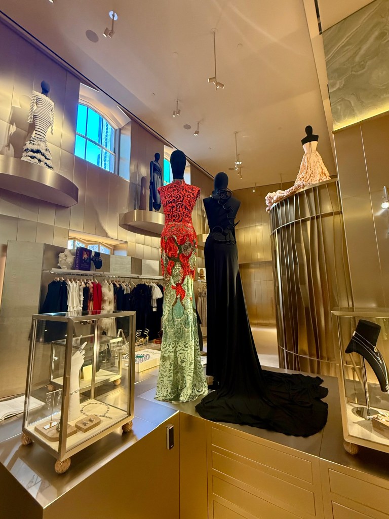 The Red Room at Printemps is a functioning shoe store, and I dare you to find a more extraordinary one. Photographs truly don’t do it justice. If you entered Printemps NYC from Wall Street and experienced the Red Room first, the rest of the store – while gorgeous – would be anticlimactic after such opulence. If you visit on a weekend or later in the day, you might actually have to wait on a line to get in and you will see plenty of people taking photos and posing in the entire store, but particularly in the Red Room. My recommendation, if you possibly can, is to get there very soon after opening (hours are 10am-7pm daily) on a week day to avoid crowds. If you go early, it will be easier to enjoy the cafe as well (the cafe opens earlier most days, at 8am). Going later in the day would be an alternate plan, and enjoy a drink at one of the bars for the most elegant happy hour. The Red Room bar is open later, until 11:00pm, and the restaurant Maison Passerelle is open 5pm-10:30pm.