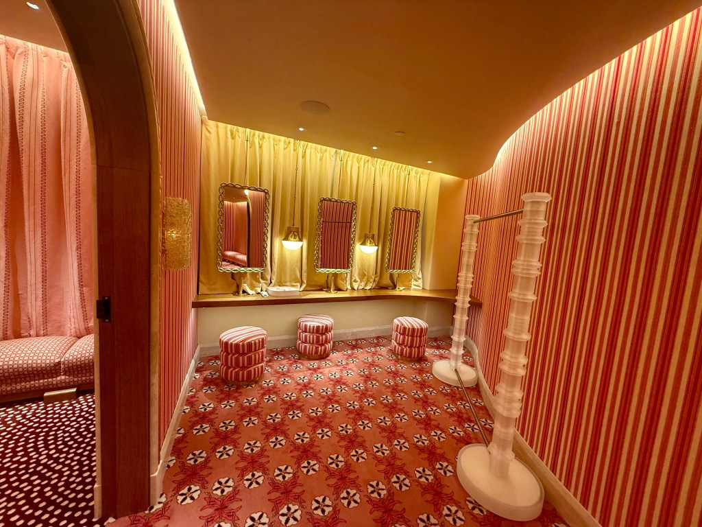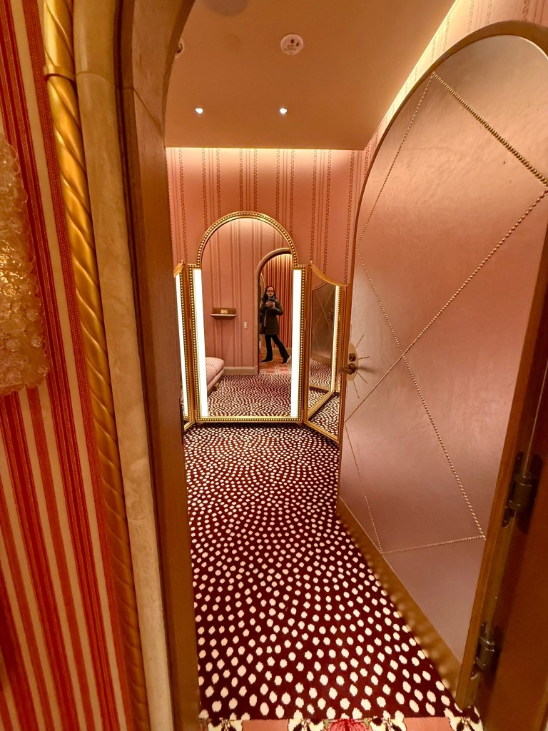 Past the bathrooms, you find a grand staircase to lead down to the most incredible area of Printemps NYC – the famed Red Room.