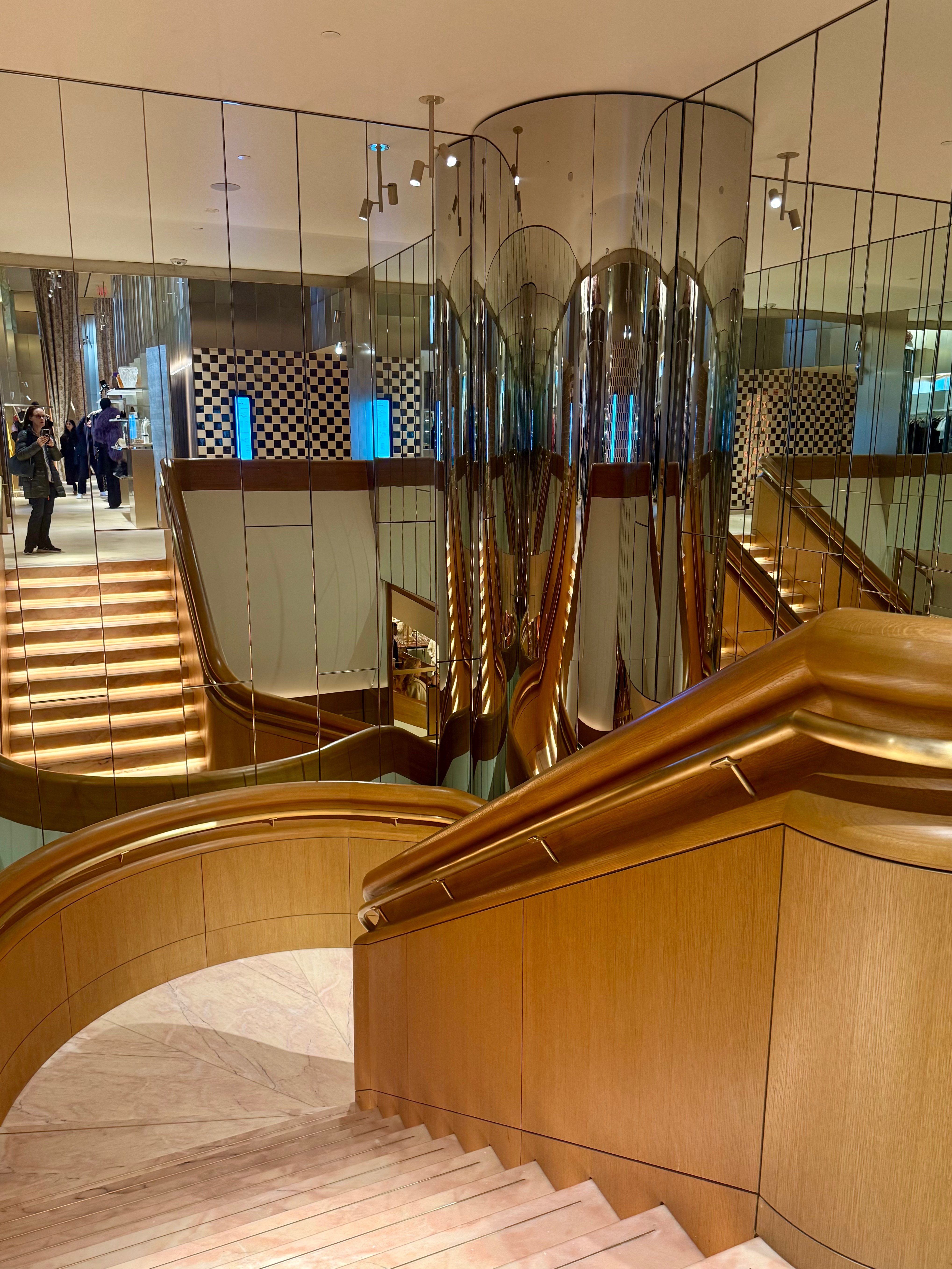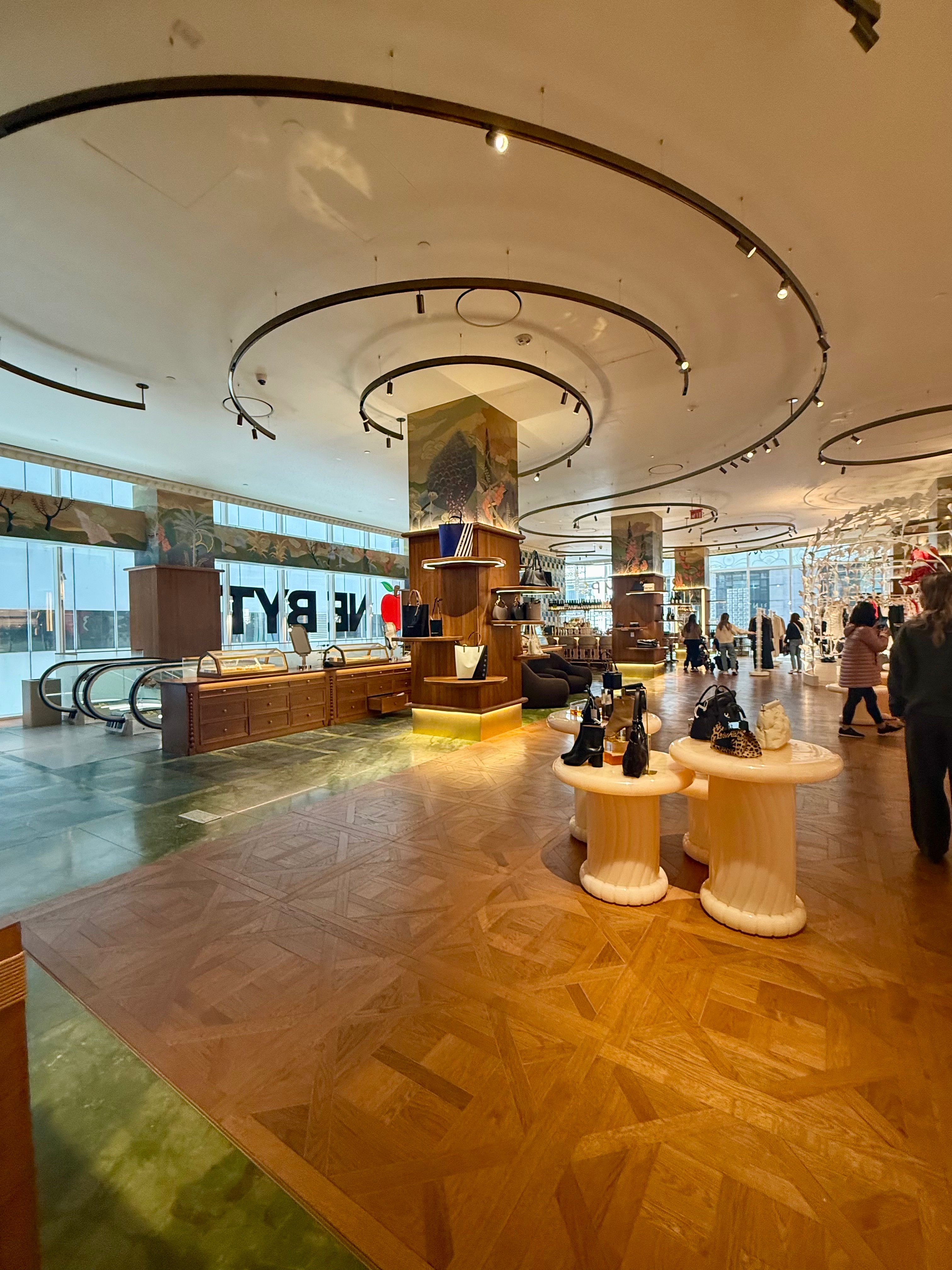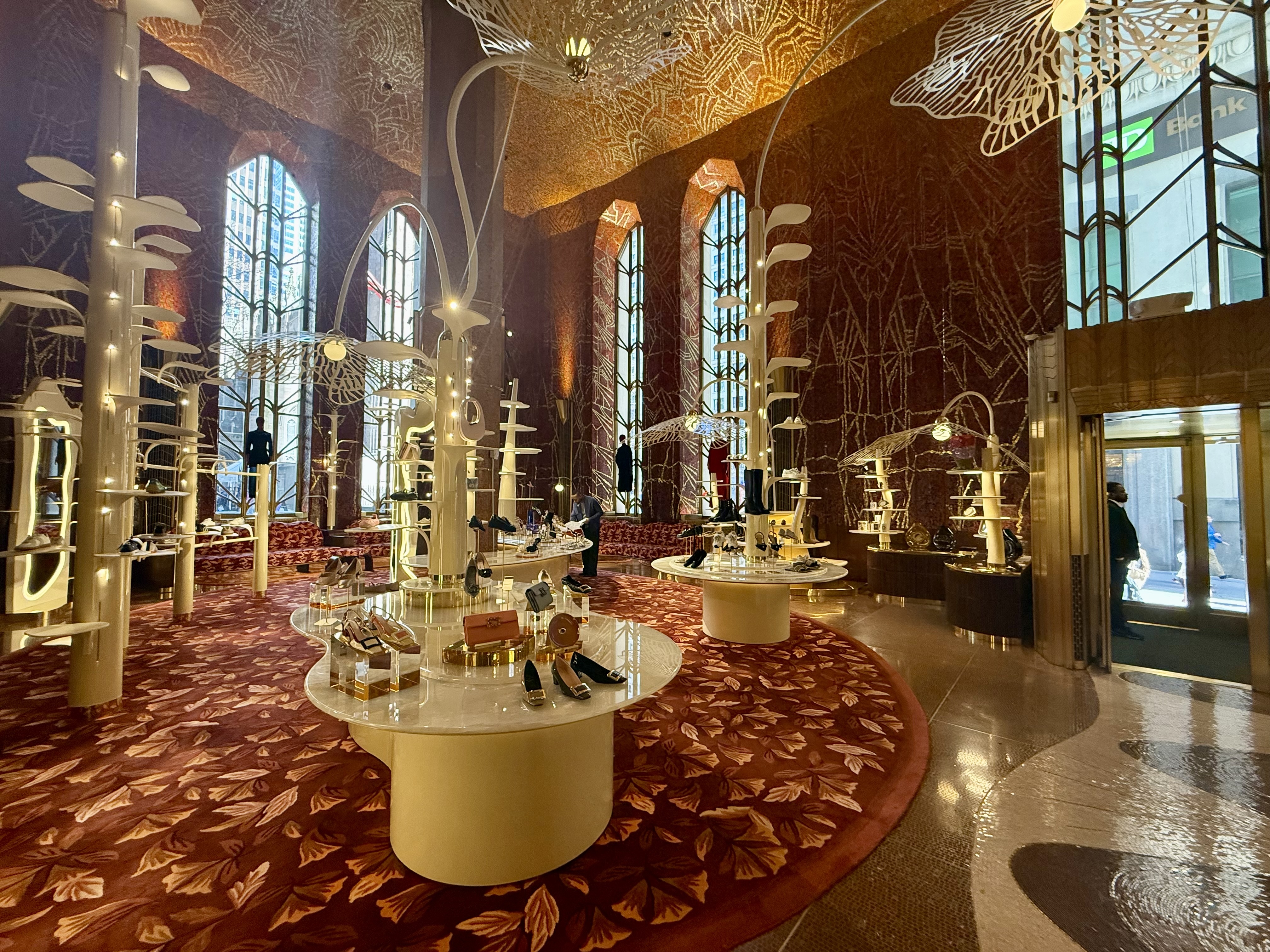 There are two entrances, but I highly recommend for your first visit to enter on Broadway rather than the side entrance on Wall Street (you will see why later). The NYC Printemps is much smaller than the Haussman flagship, but every design detail is exquisite.