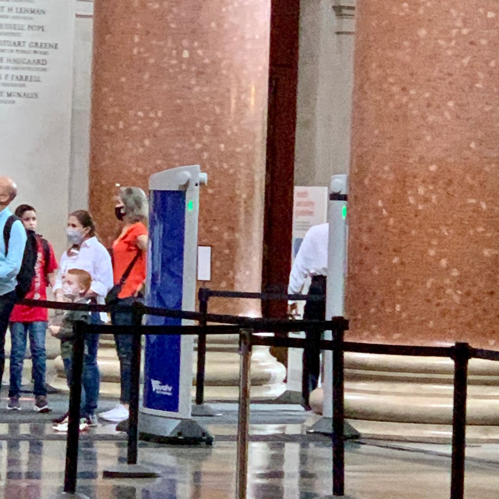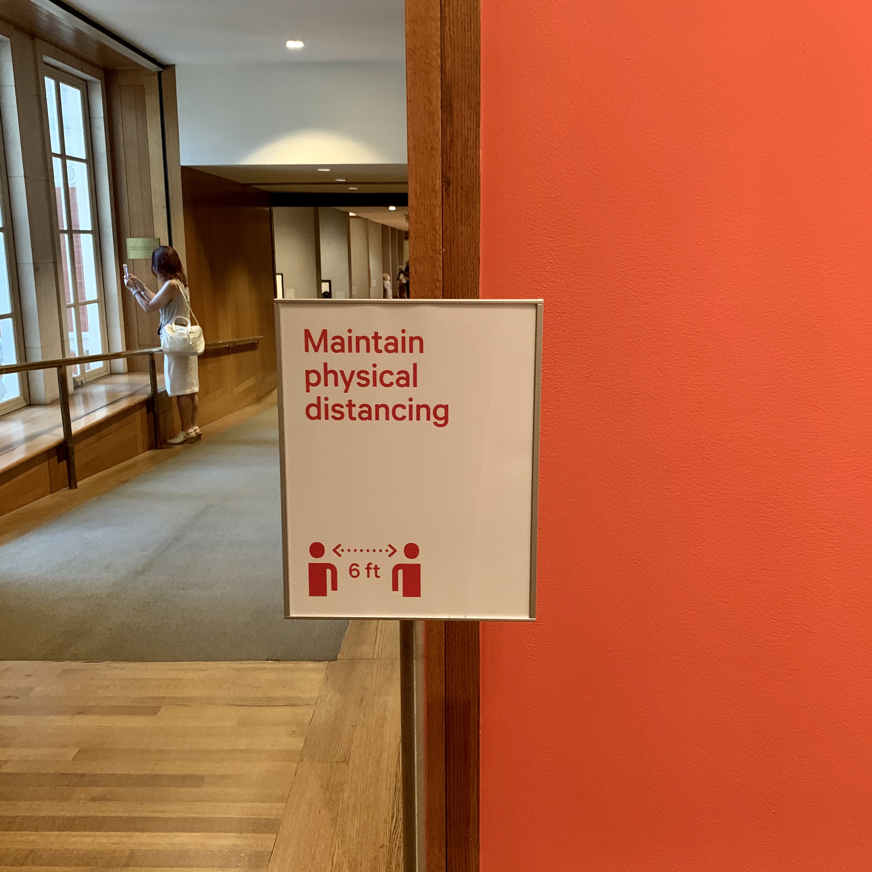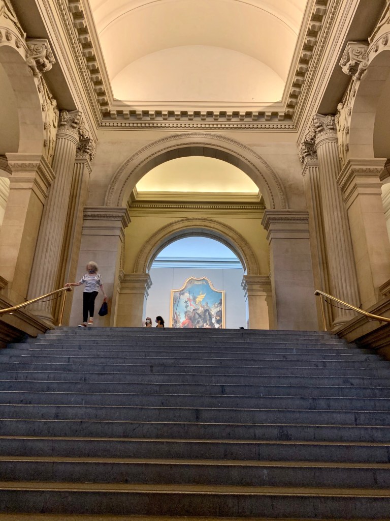 First, the Metropolitan Museum of Art – a museum so vast and all-encompassing that it can be overwhelming, especially when there are crowds. You have to make a timed reservation online in advance (here), your temperature is checked upon entrance, masks are required, hand sanitizer is easy to find, and there are social distancing signs everywhere. I didn’t ride in an elevator, but when I passed them there were long lines, in part because people were keeping six feet of distance even while waiting, but also because only two people were allowed in the elevator at the same time.
